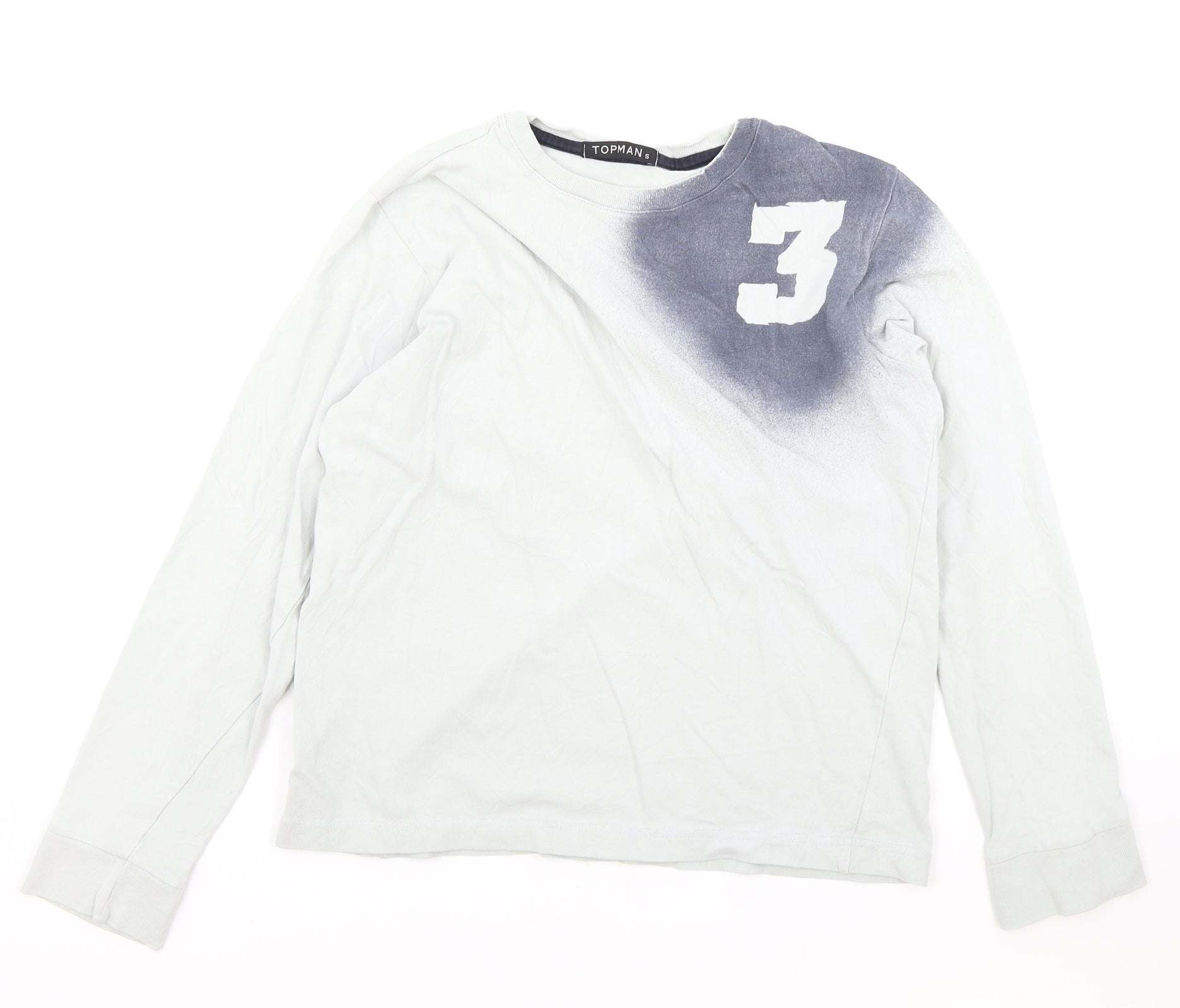 Topman Mens Blue Polyester T-Shirt Size S Round Neck - Graffiti