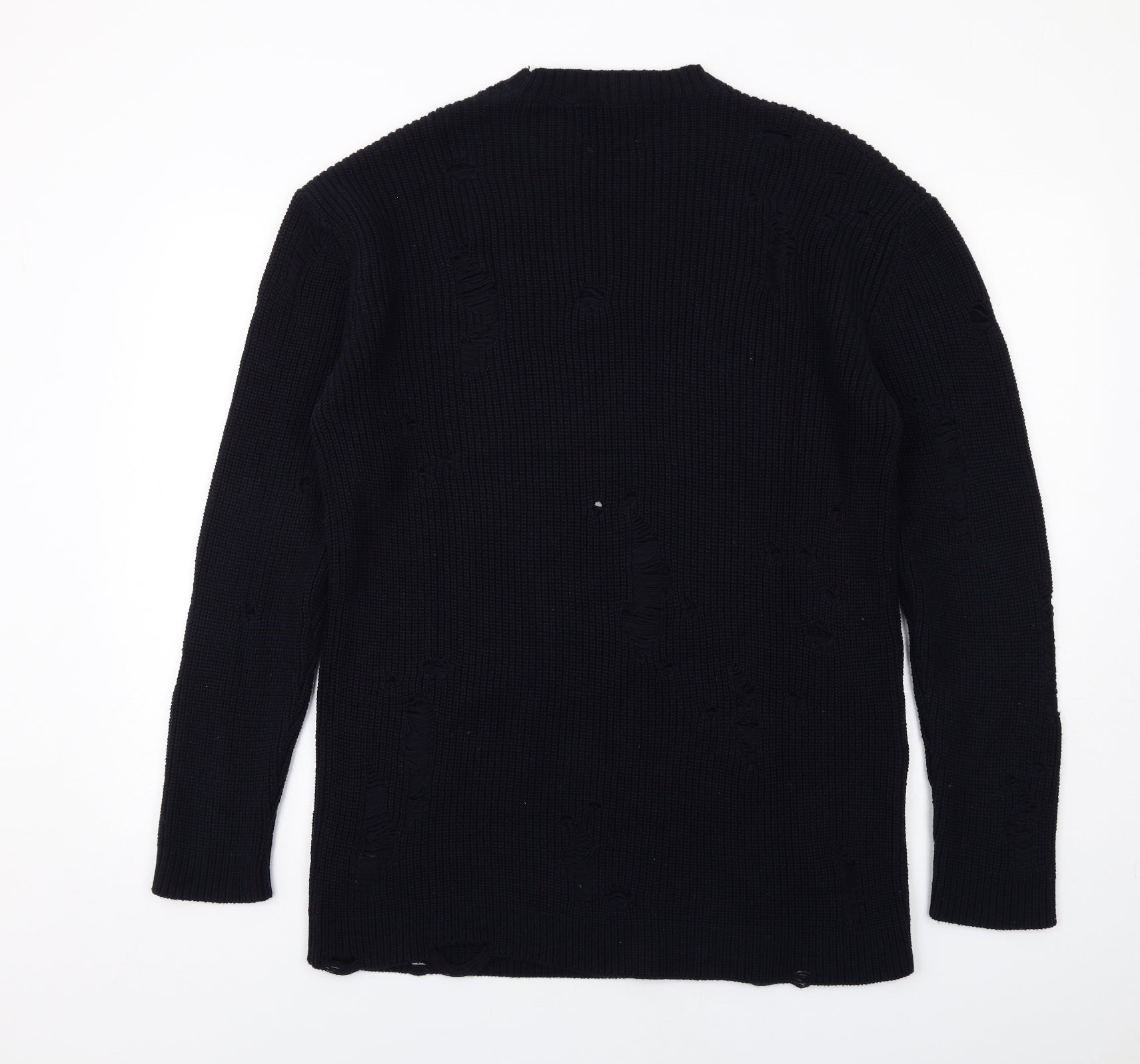 Topman Mens Blue Round Neck Cotton Pullover Jumper Size M Long Sleeve - Distressed