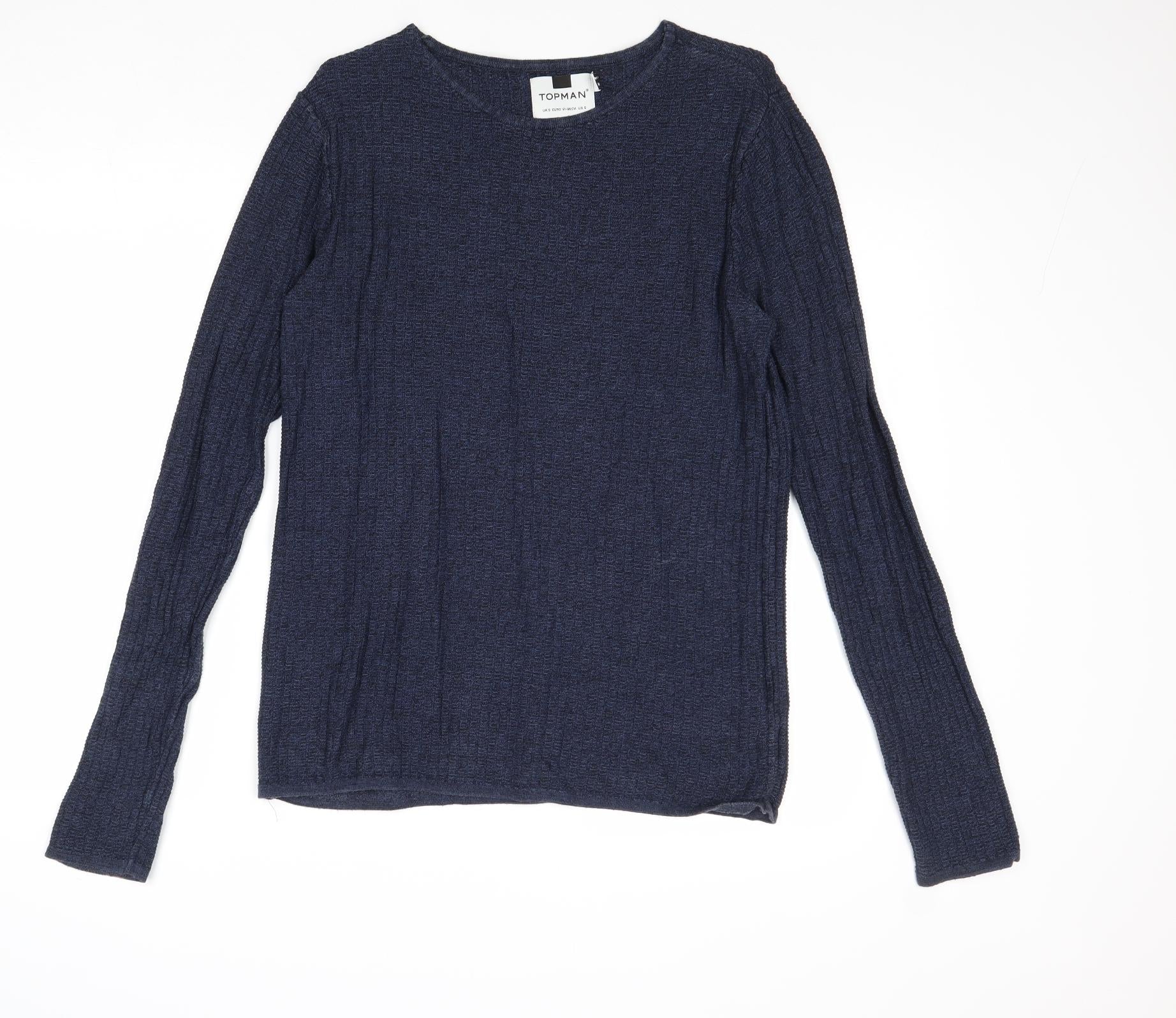 Topman Mens Blue Round Neck Cotton Pullover Jumper Size S Long Sleeve