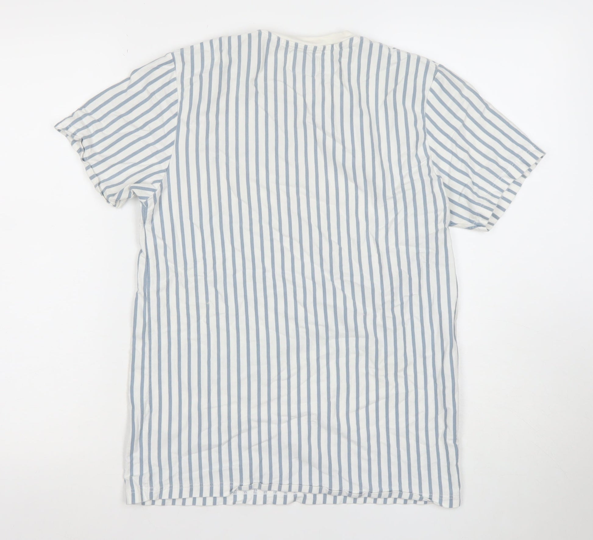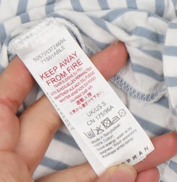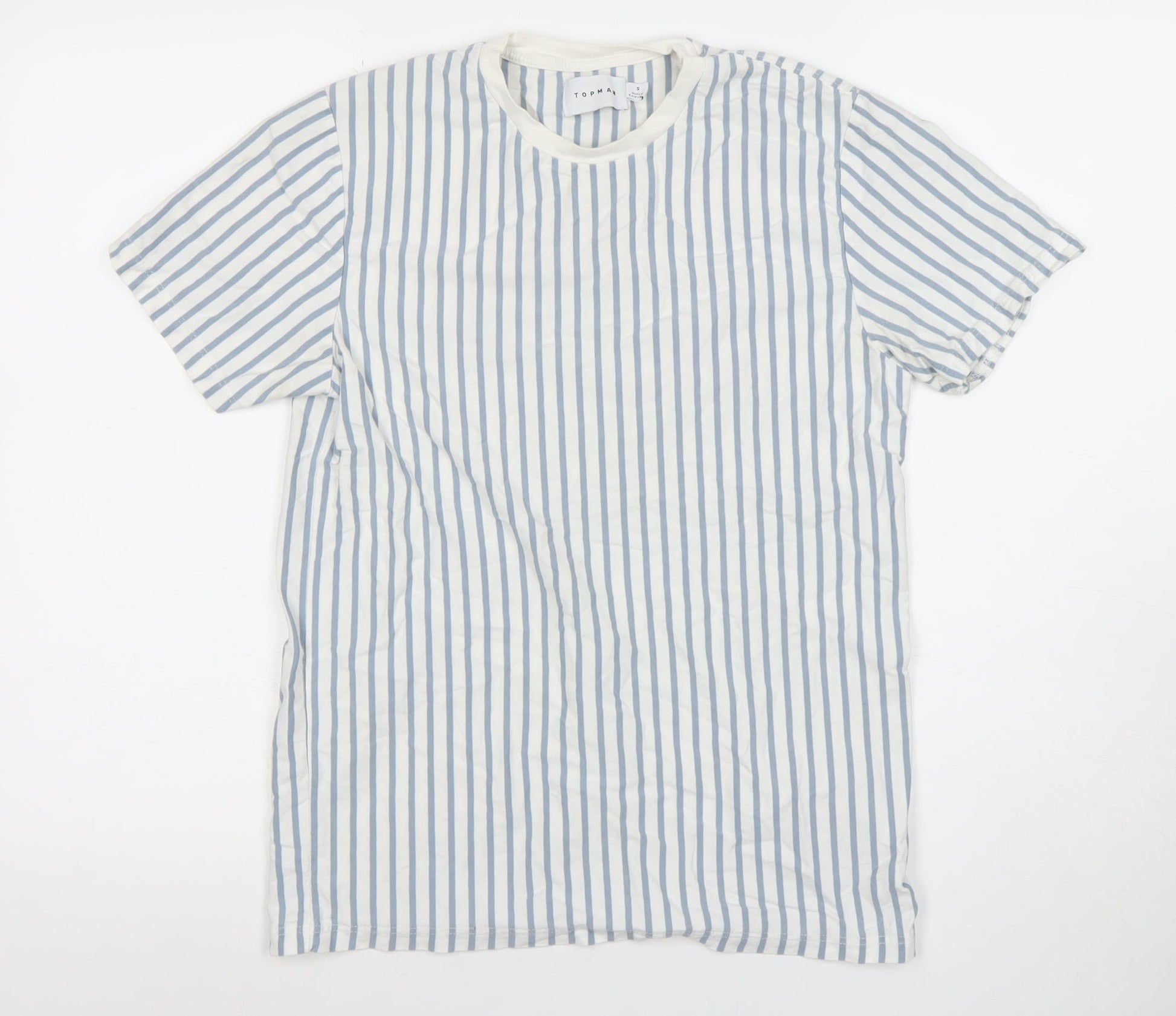 Topman Men's Blue White Striped Cotton Crew Neck T-Shirt Size S