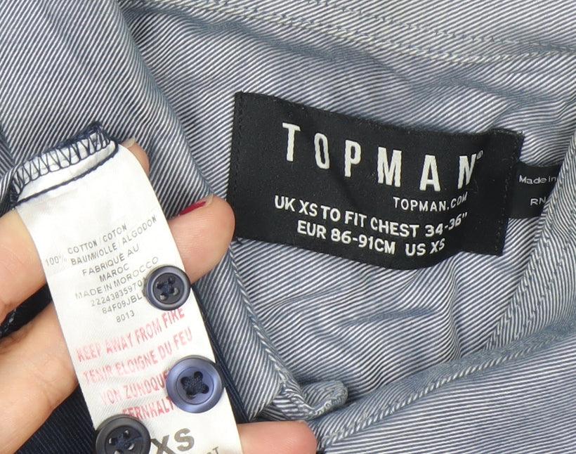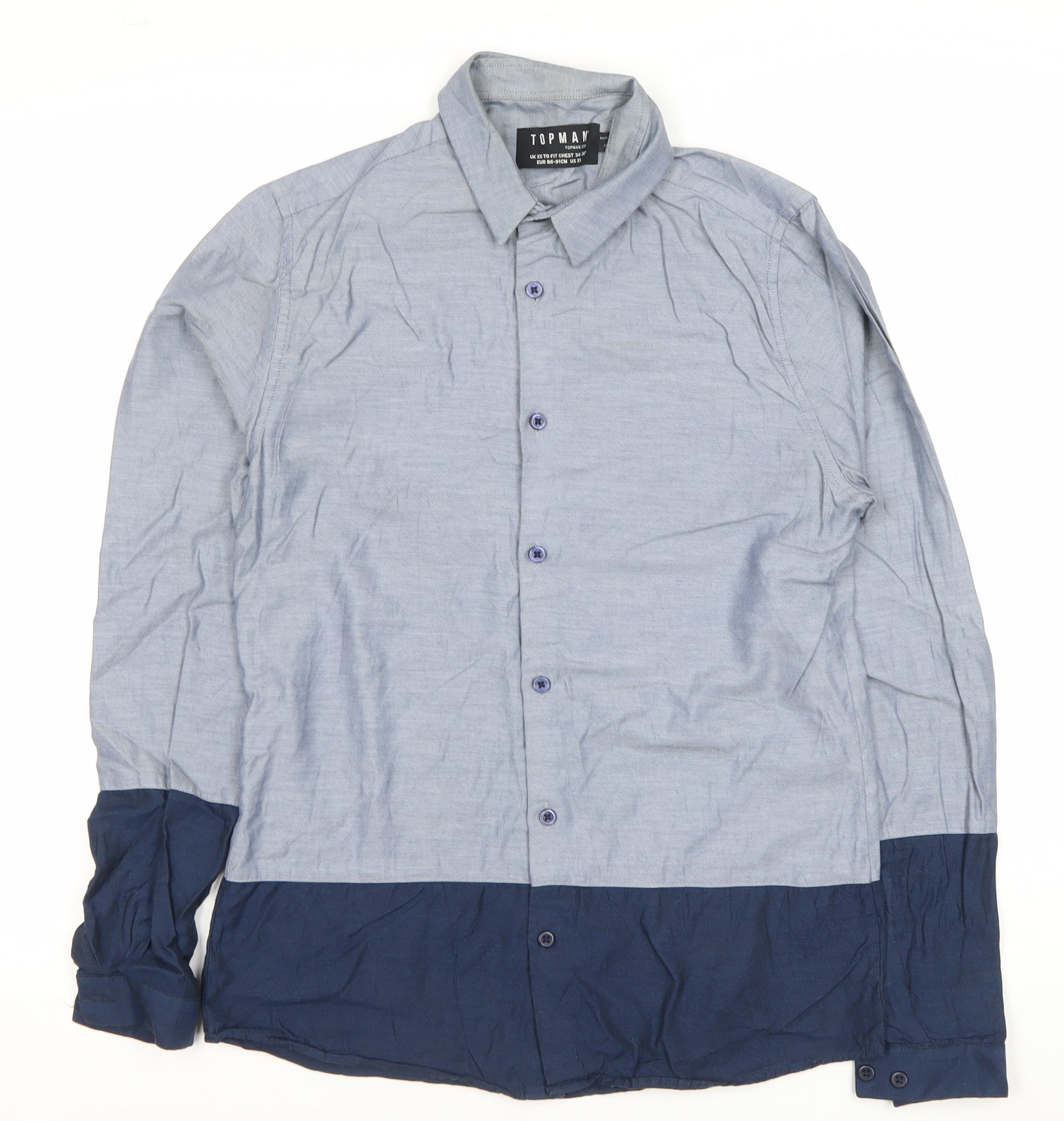Topman Mens Blue XS Colourblock Cotton Long Sleeve Dress Shirt