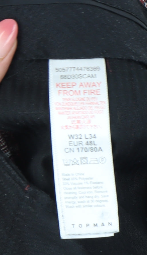 Topman Mens Brown Plaid Slim Fit Trousers W32 L34 Retro Style