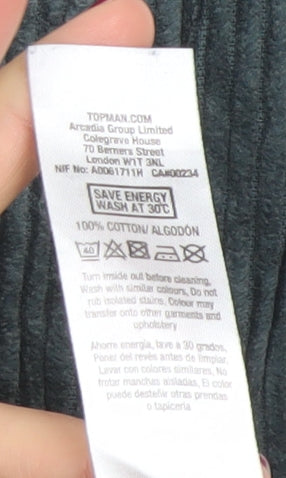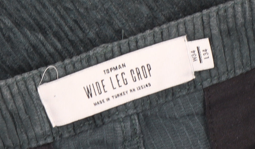 Topman Men's Green Corduroy Wide Leg Cropped Trousers W34 L34