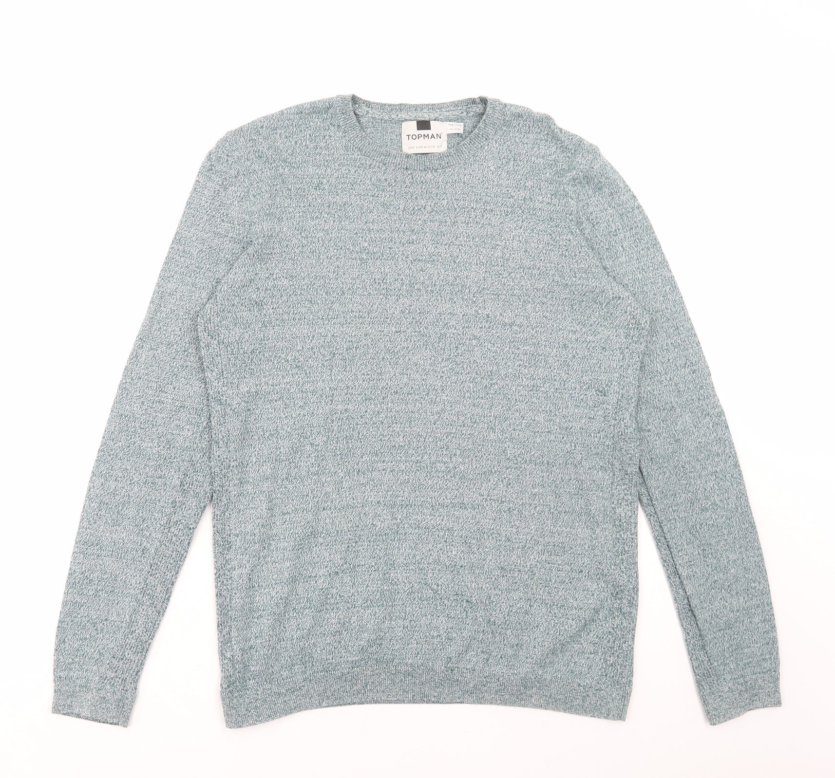 Topman Mens Green Round Neck Cotton Pullover Jumper Size M