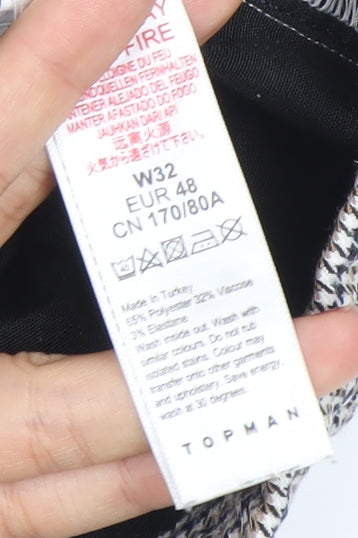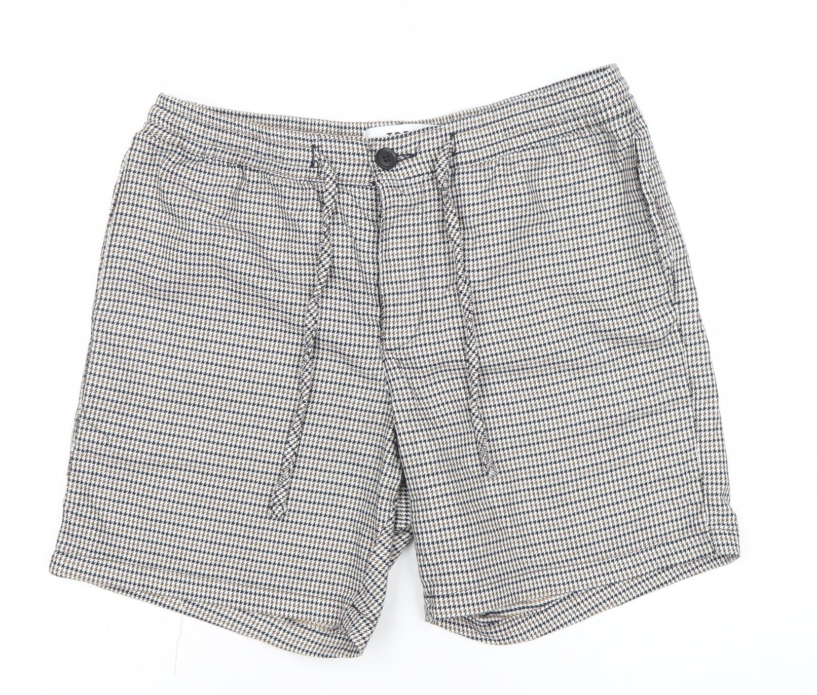 Topman Men's Grey Check Chino Shorts Size W32 Elastic Waist