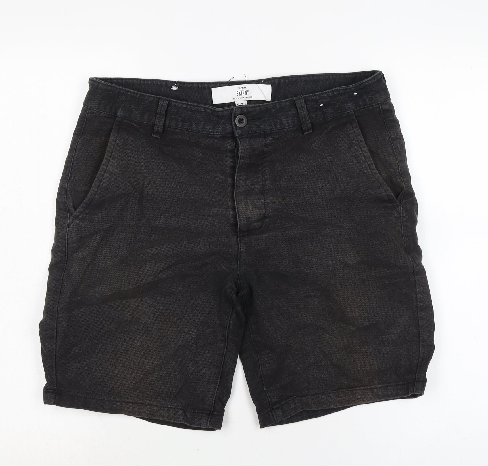 Topman Mens Grey Cotton Bermuda Shorts Size 32 in Regular Button