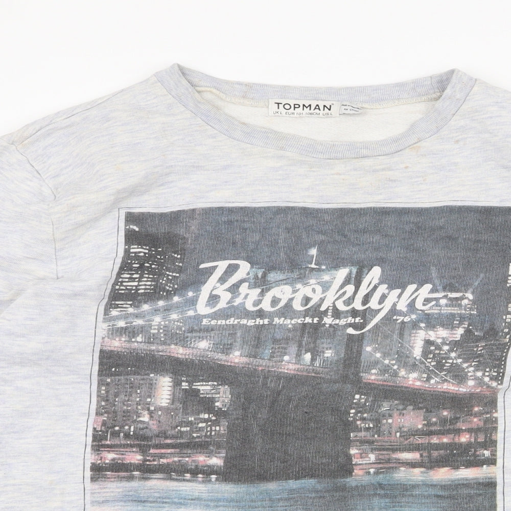 Topman Mens Grey Cotton Pullover Sweatshirt Size L - Brooklyn