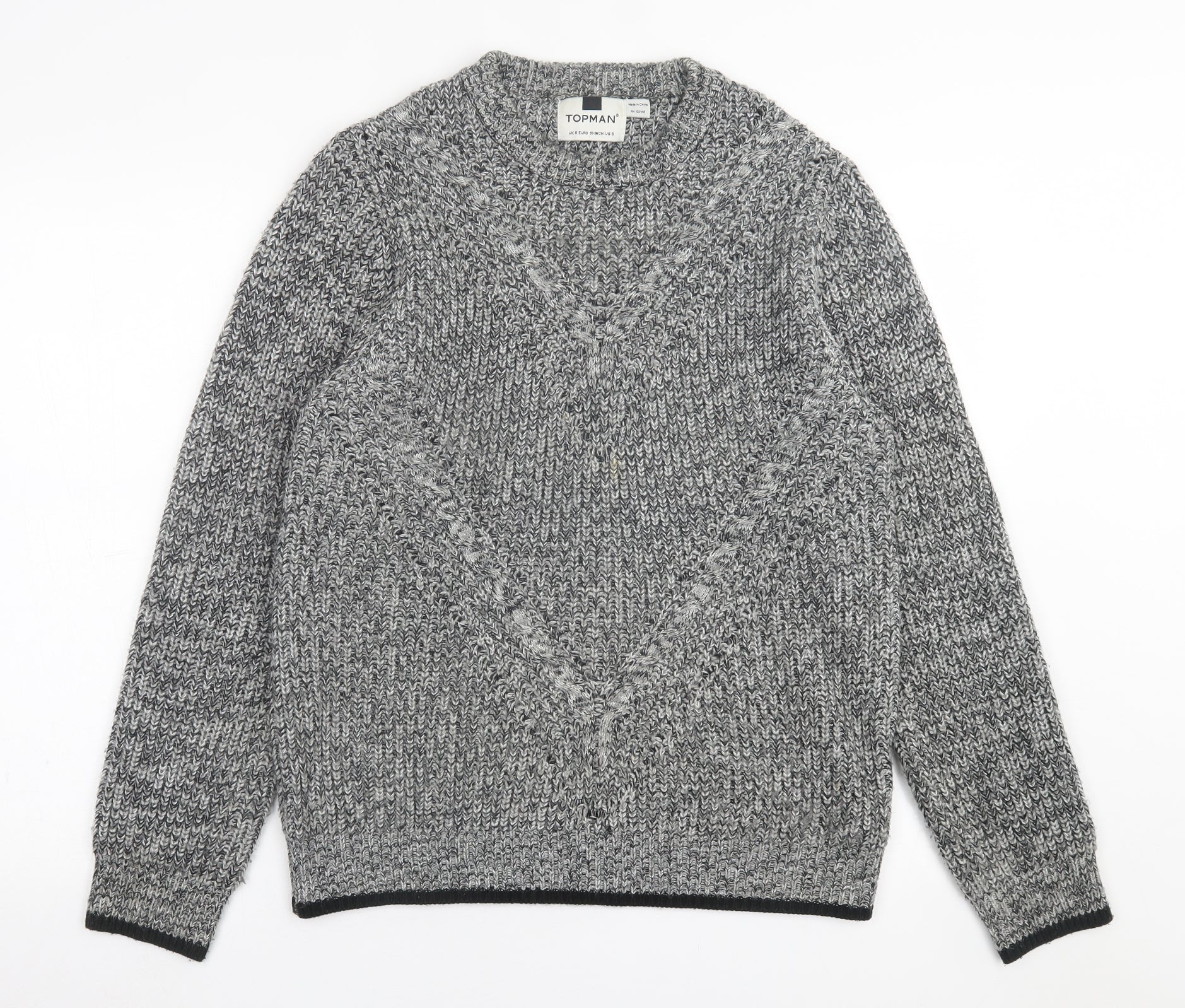 Topman Mens Grey Crew Neck Acrylic Pullover Jumper Size S