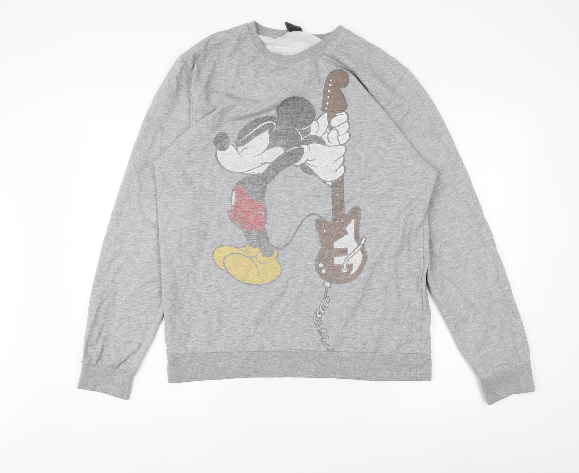 Topman Men's Grey Crew Neck Cartoon Sweatshirt, L