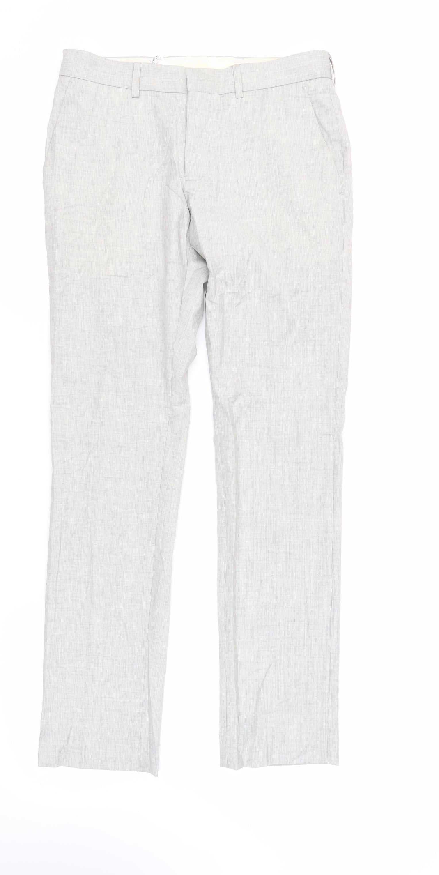 Topman Mens Grey Polyester Dress Pants Trousers Size 30 in L32 in Regular Zip