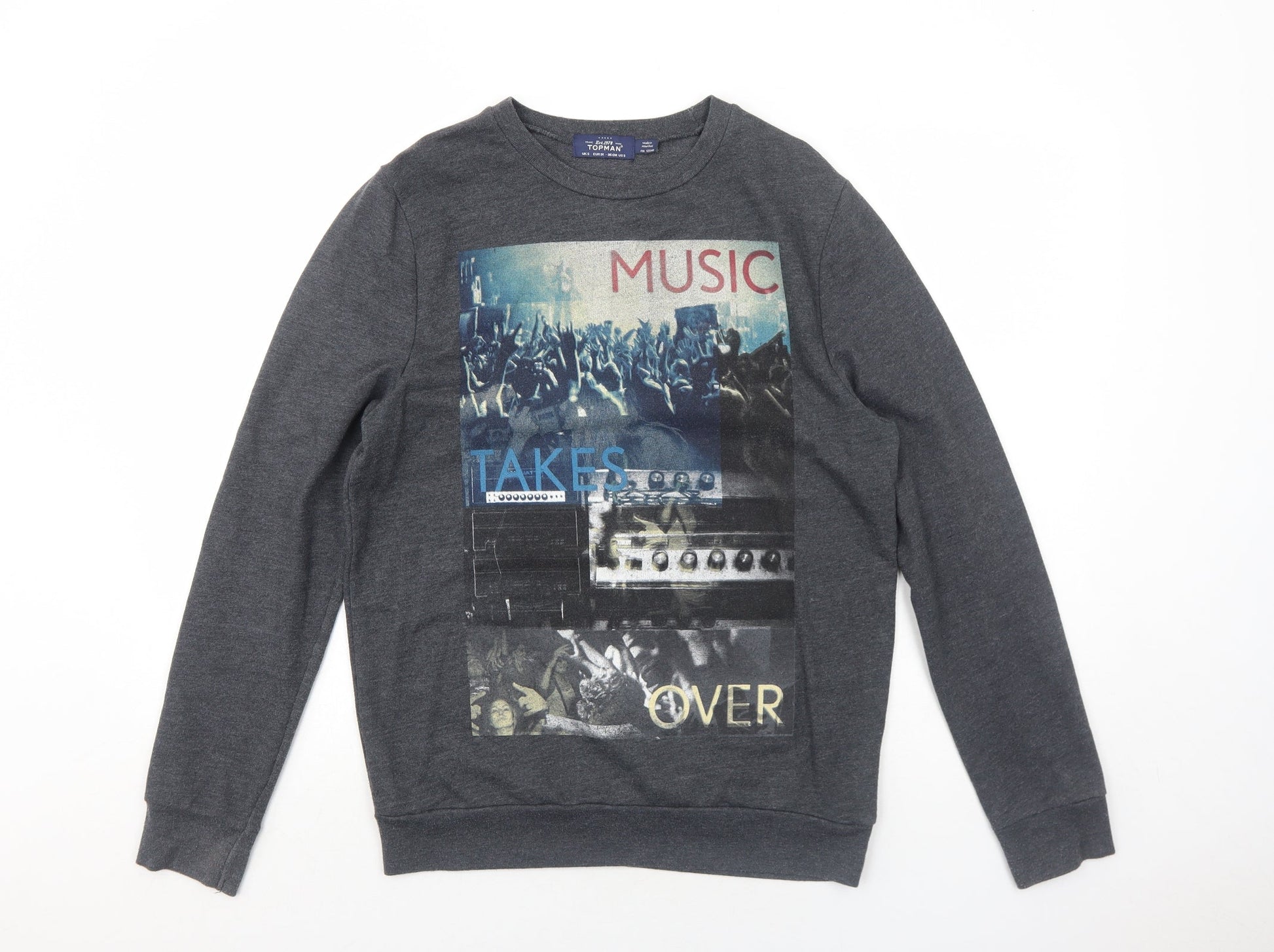 Topman Mens Grey Polyester Pullover Sweatshirt Size S - Music Takes Over
