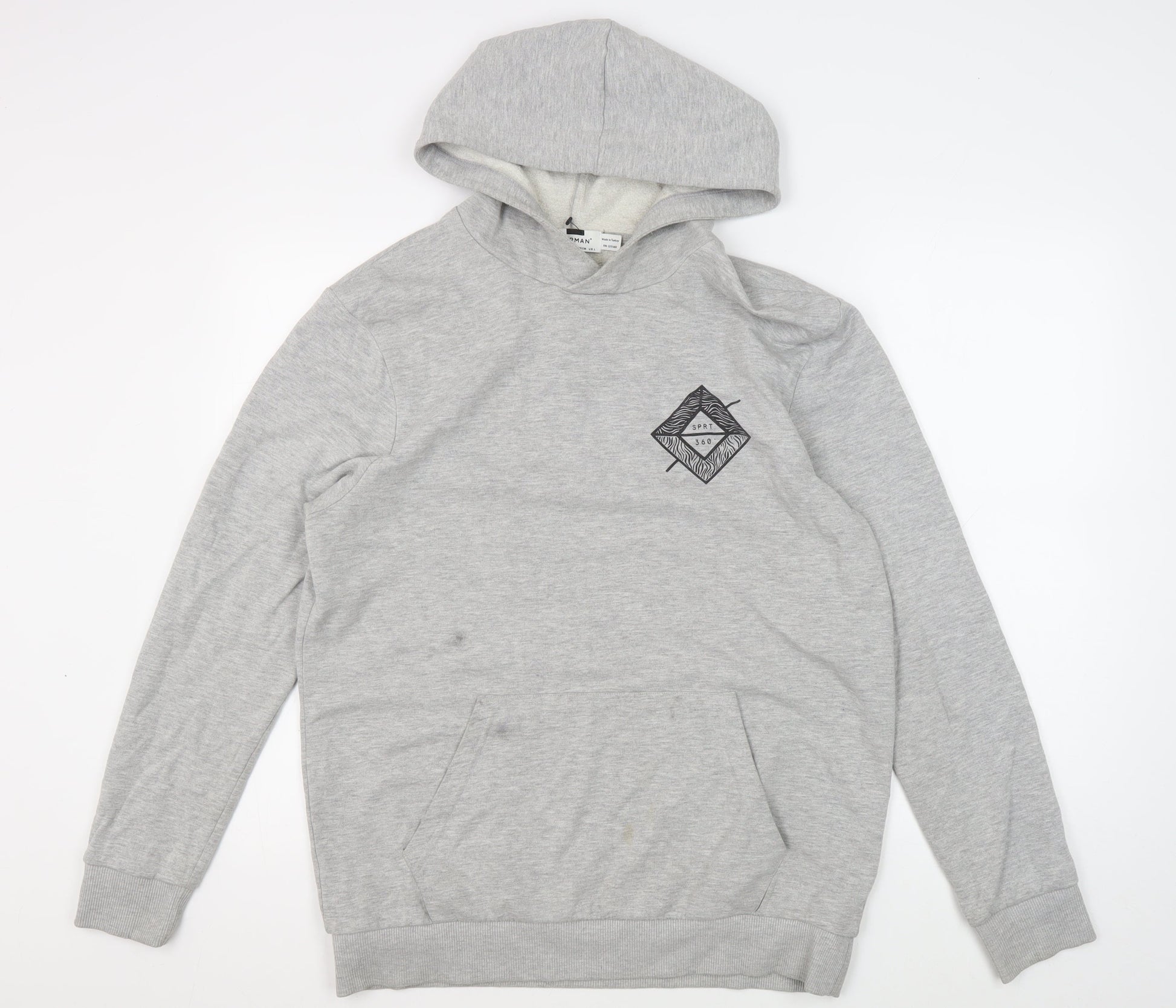 Topman Men's Grey Pullover Hoodie, L, Stylish & Comfy