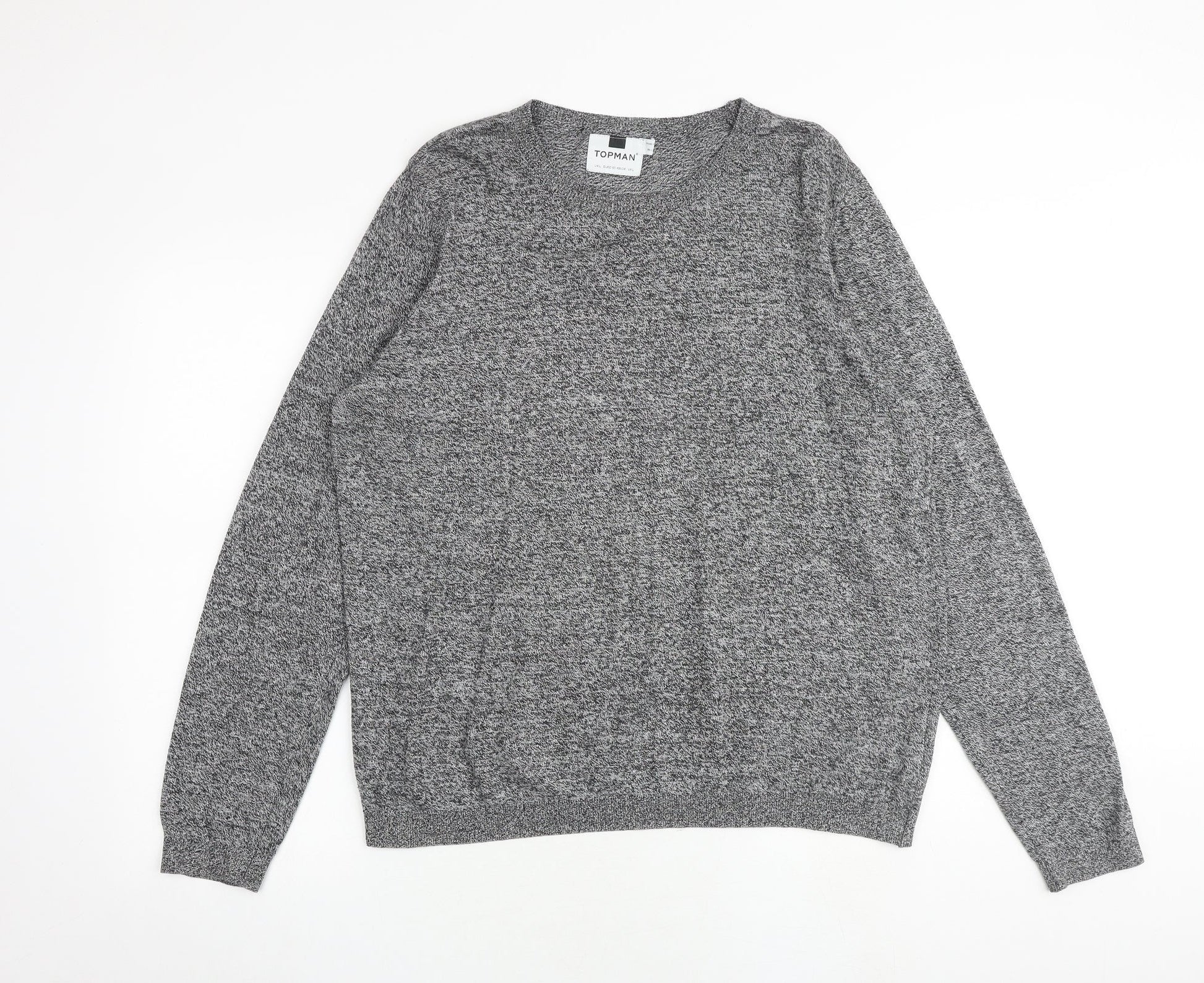 Topman Mens Grey Round Neck Cotton Pullover Jumper Size L Long Sleeve