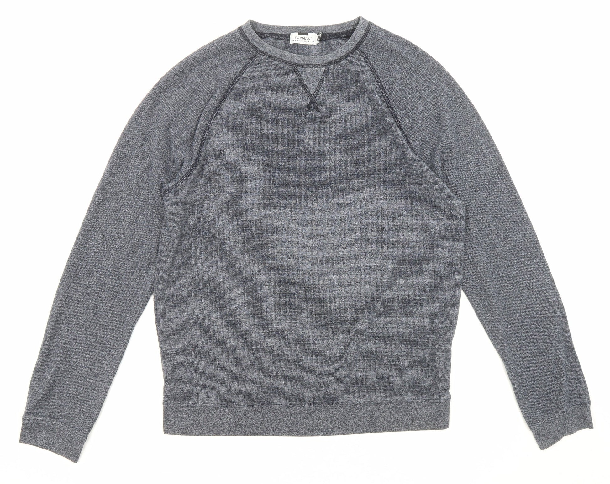 Topman Mens Grey Round Neck Cotton Pullover Jumper Size M Long Sleeve