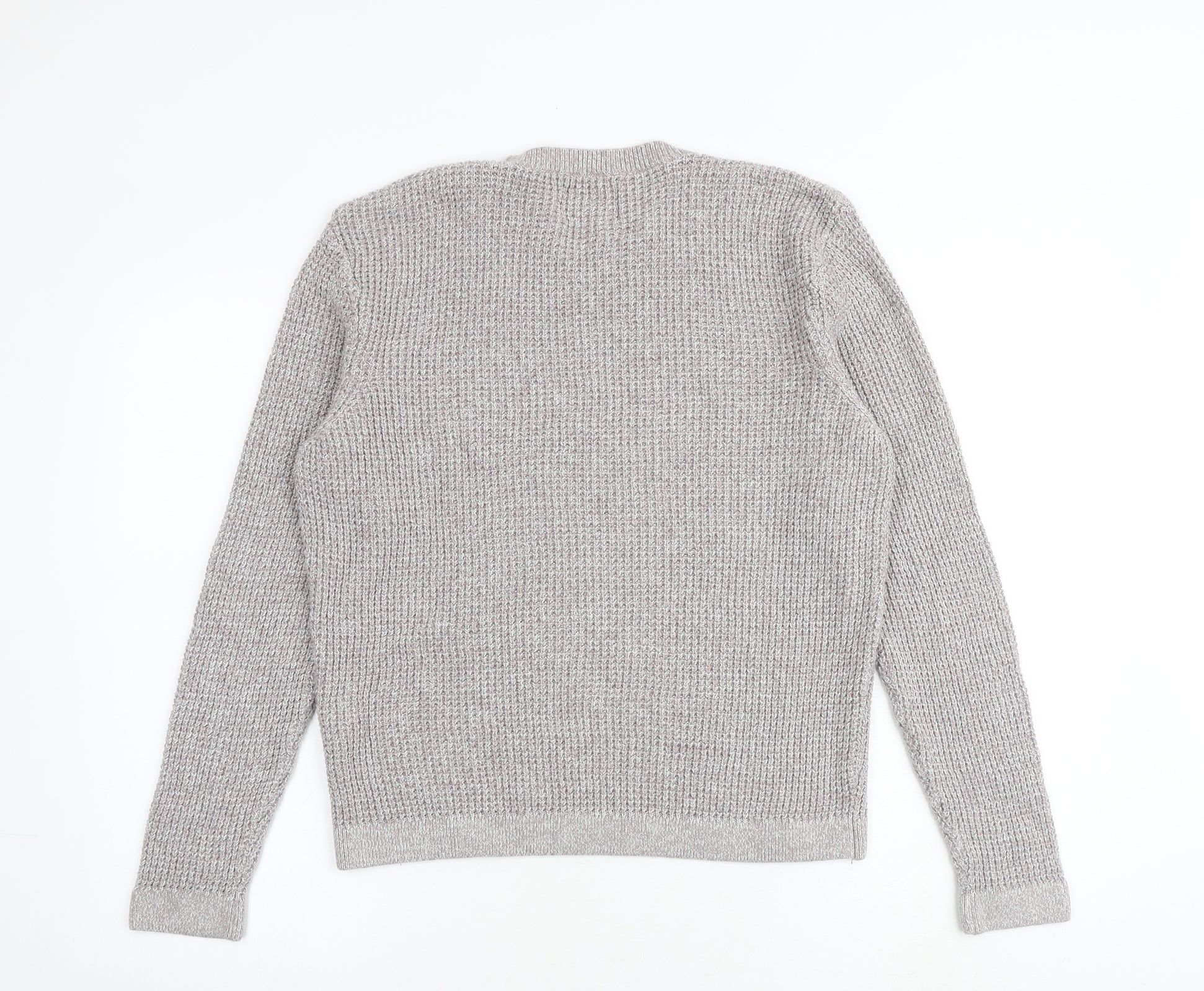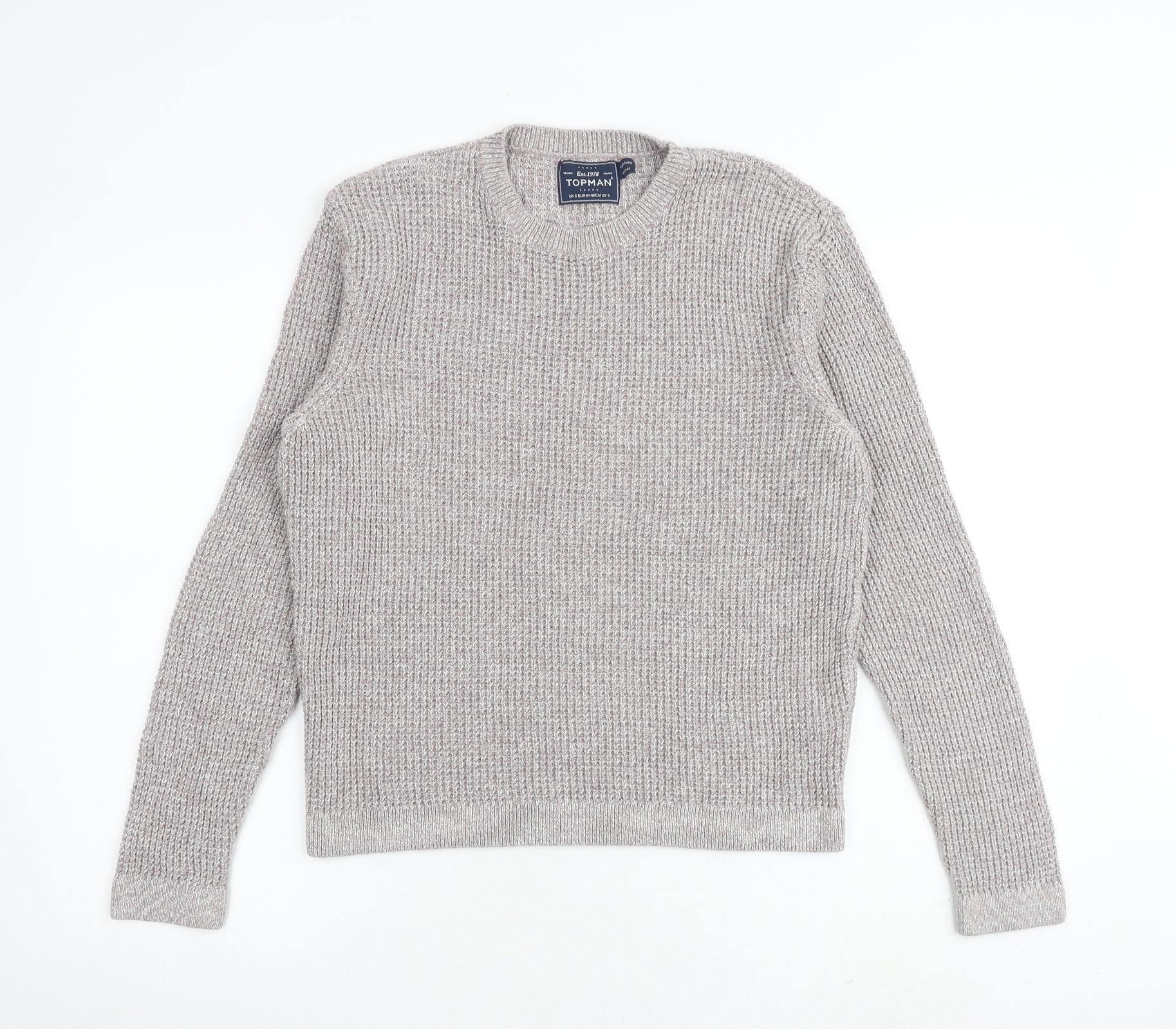 Topman Mens Grey Round Neck Cotton Pullover Jumper Size S Long Sleeve