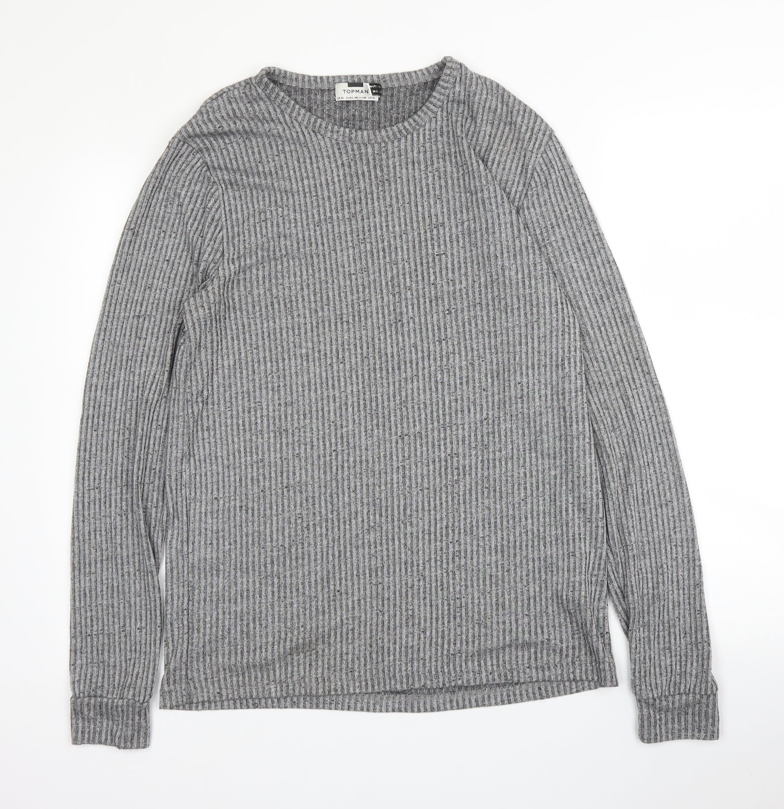 Topman Mens Grey Round Neck Viscose Pullover Jumper Size XL