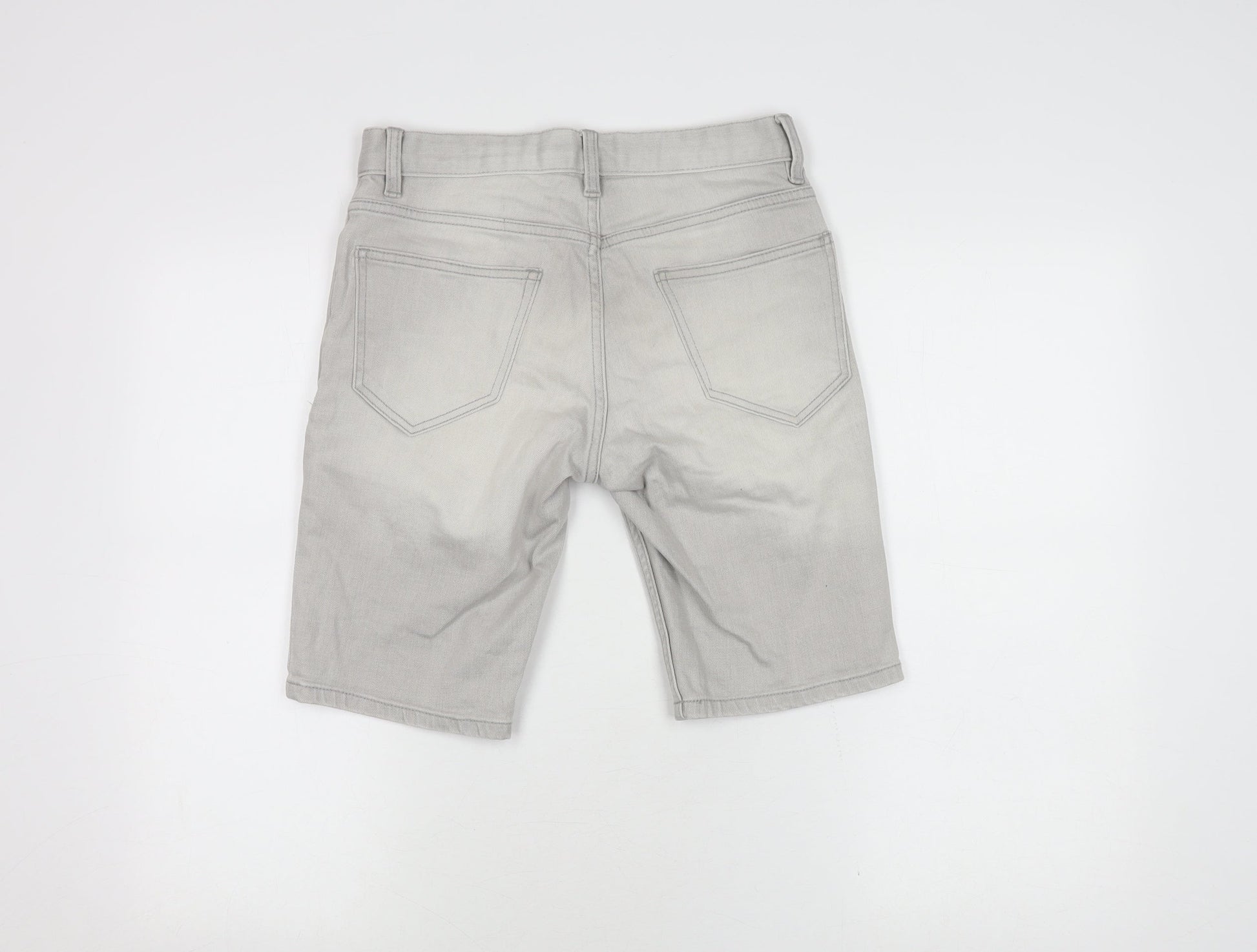 Topman Men's Grey Slim Fit Distressed Shorts Size 28