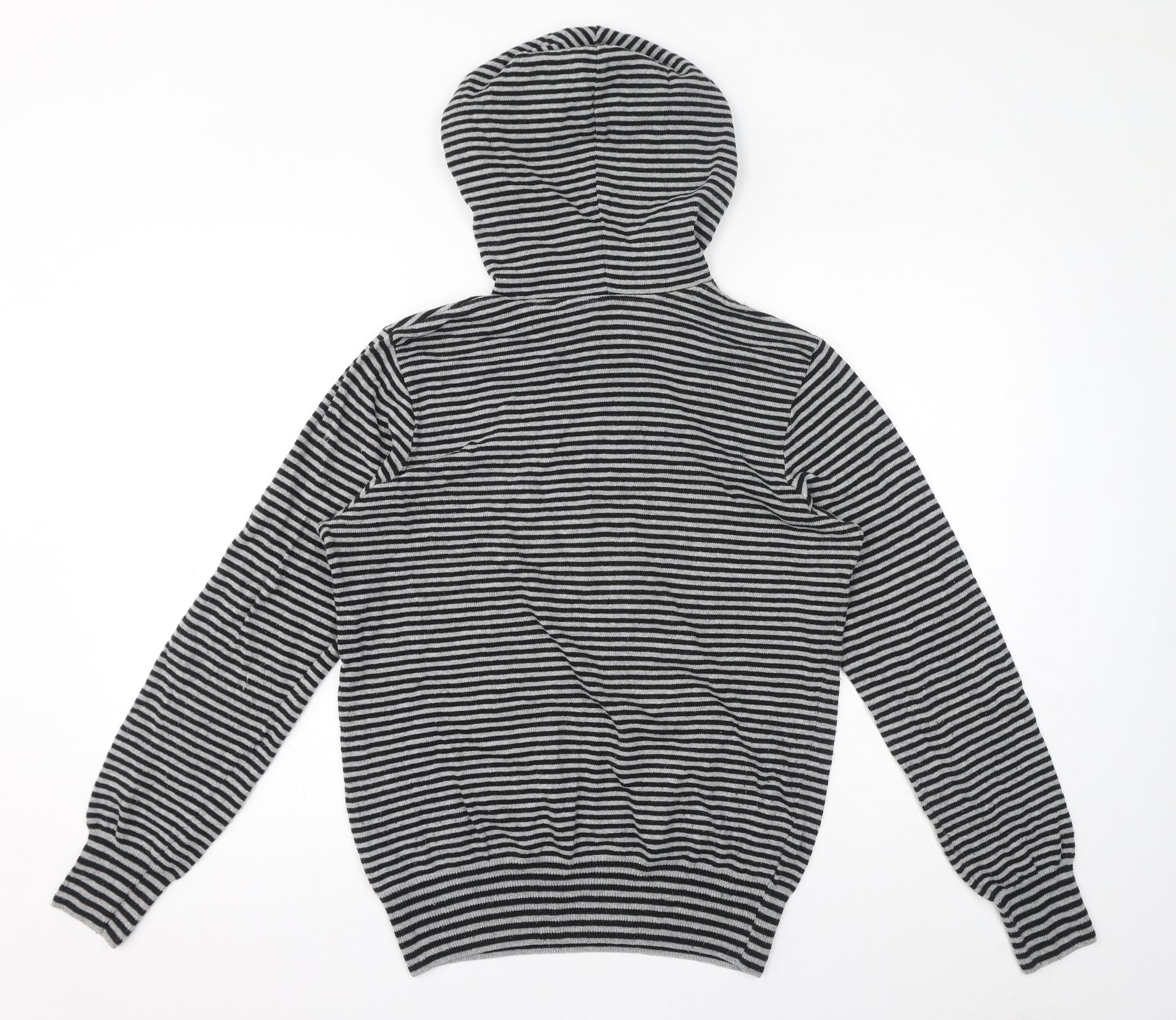 Topman Mens Grey Striped Acrylic Pullover Hoodie Size M