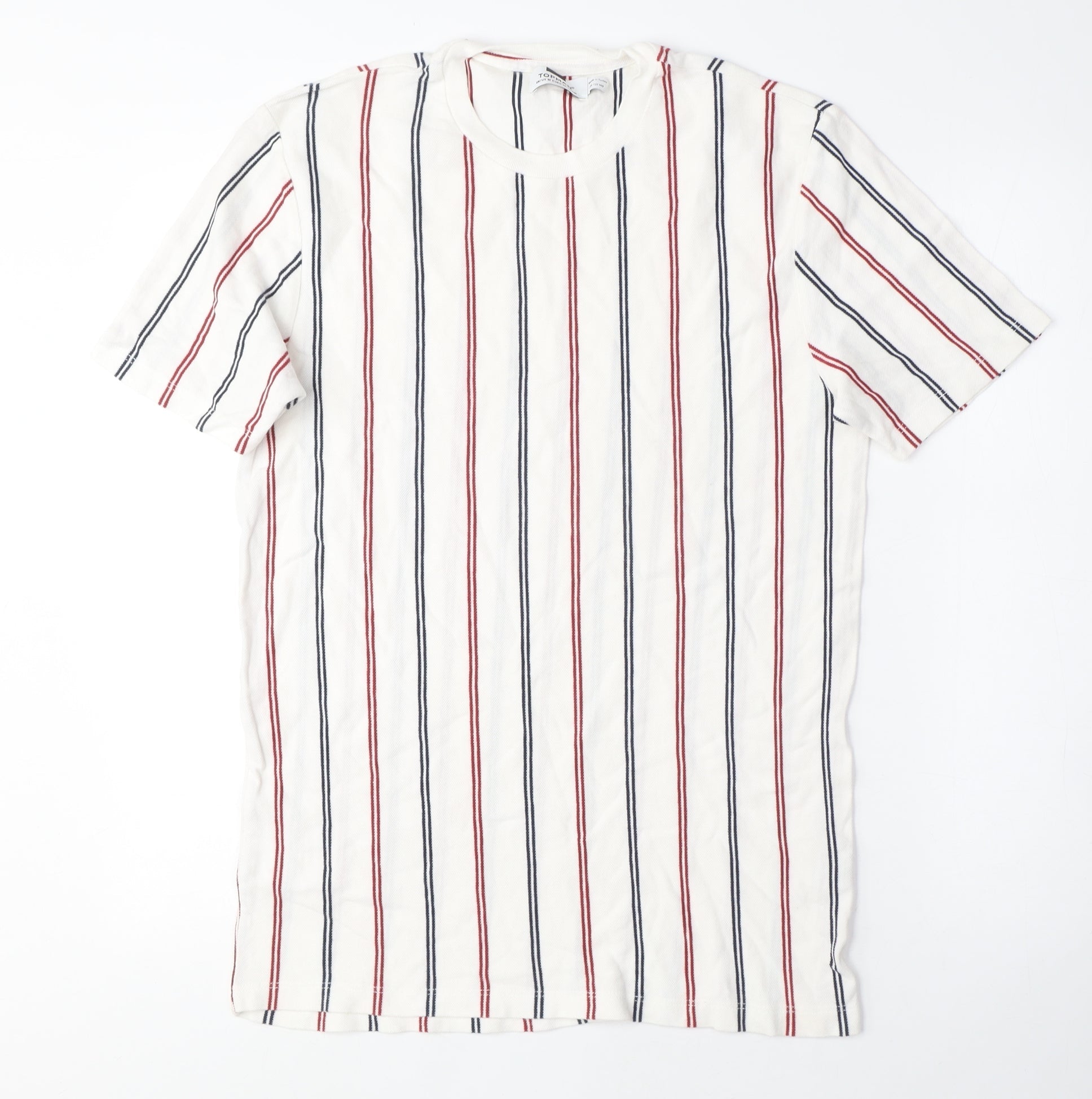 Topman Mens White Striped Cotton T-Shirt Size M Crew Neck - Red and Blue Stripes