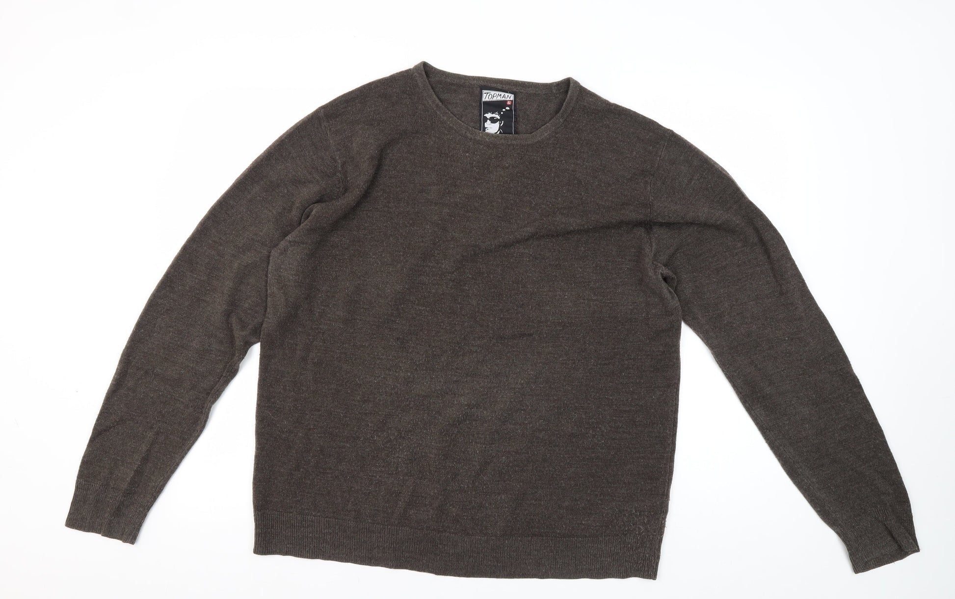 Topman Men's XL Brown Crew Neck Pullover Jumper