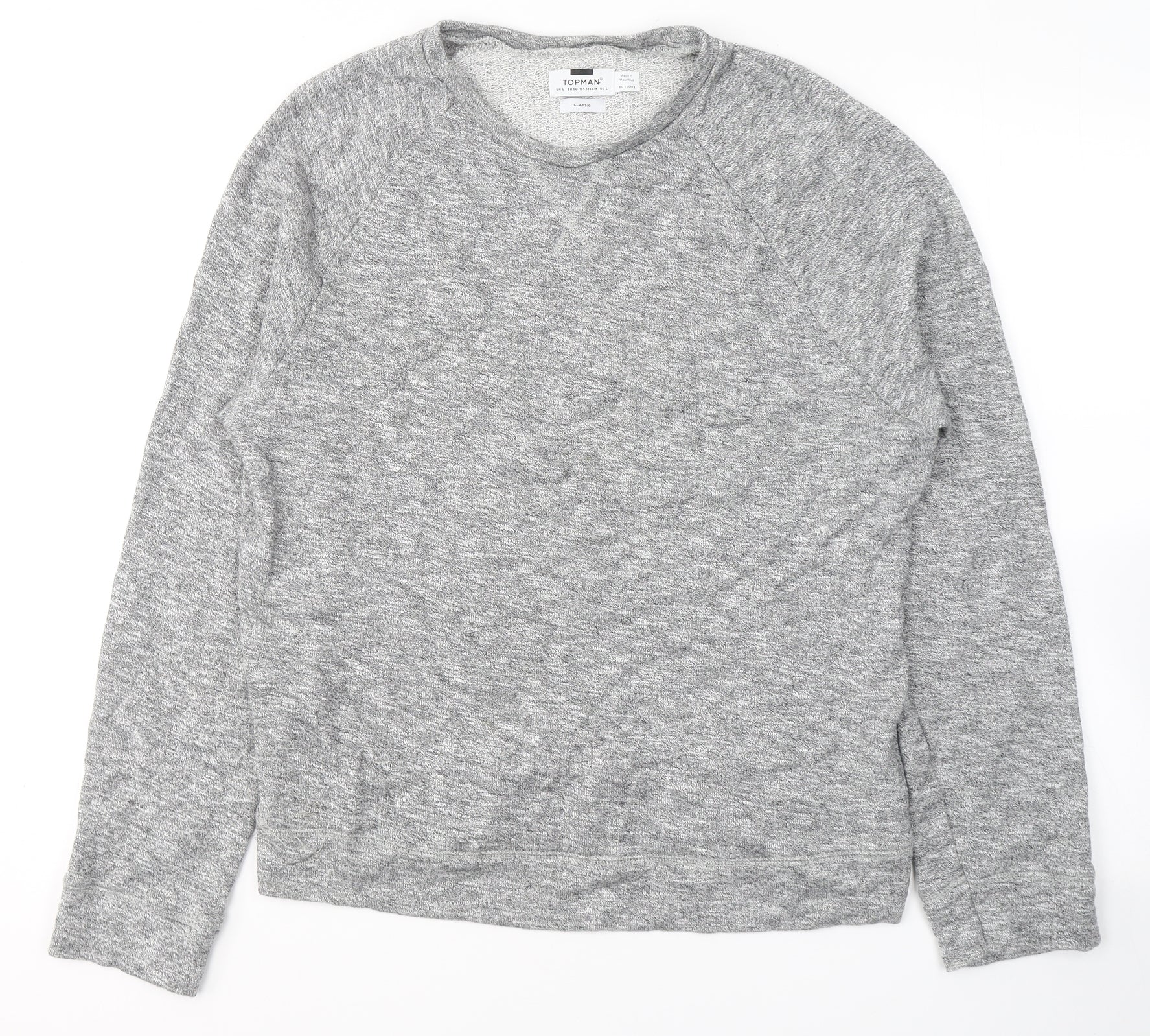 Topshop Mens Grey Round Neck Cotton Pullover Jumper Size L