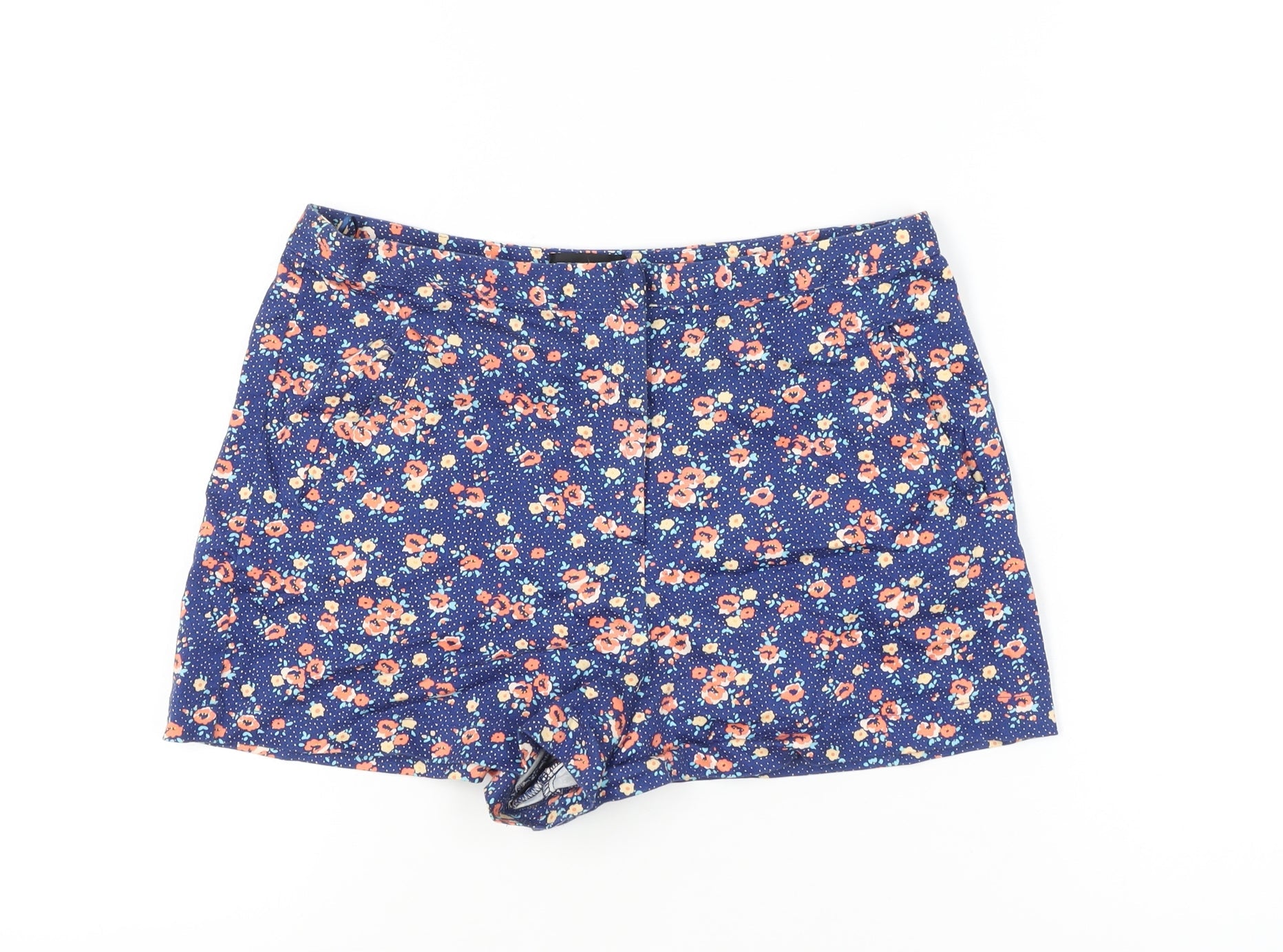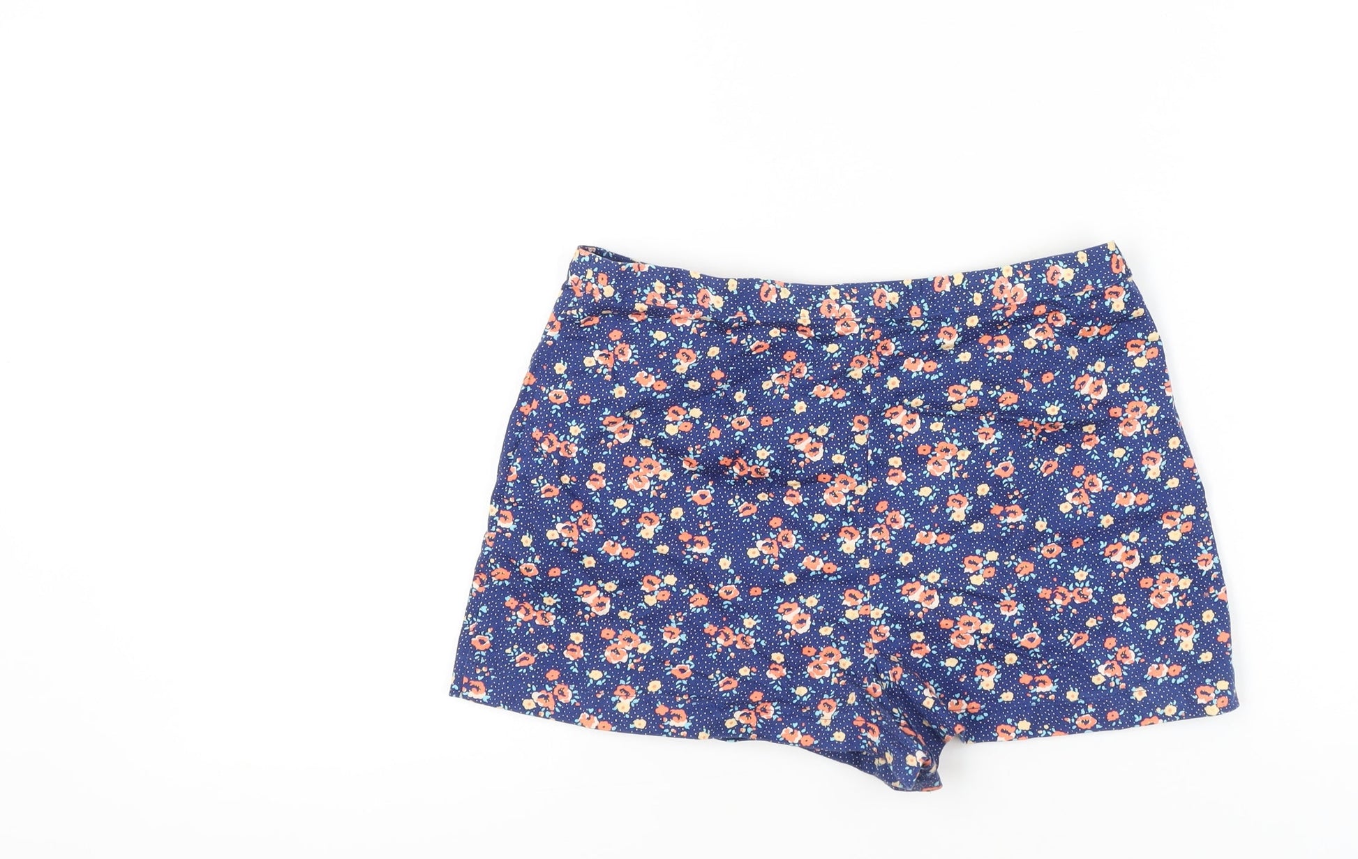 Topshop Women Blue Floral Shorts UK 12 High Rise Cotton Blend