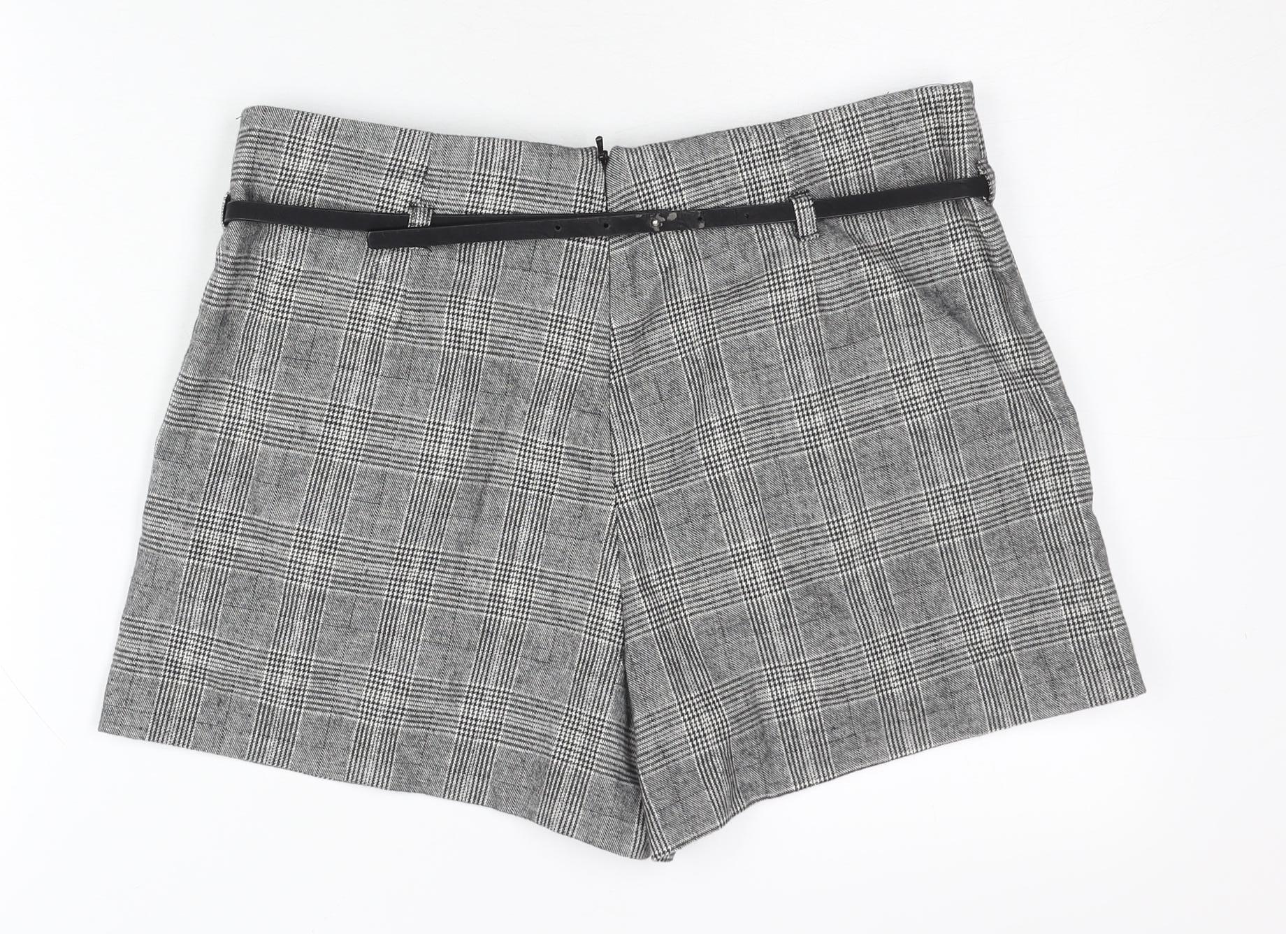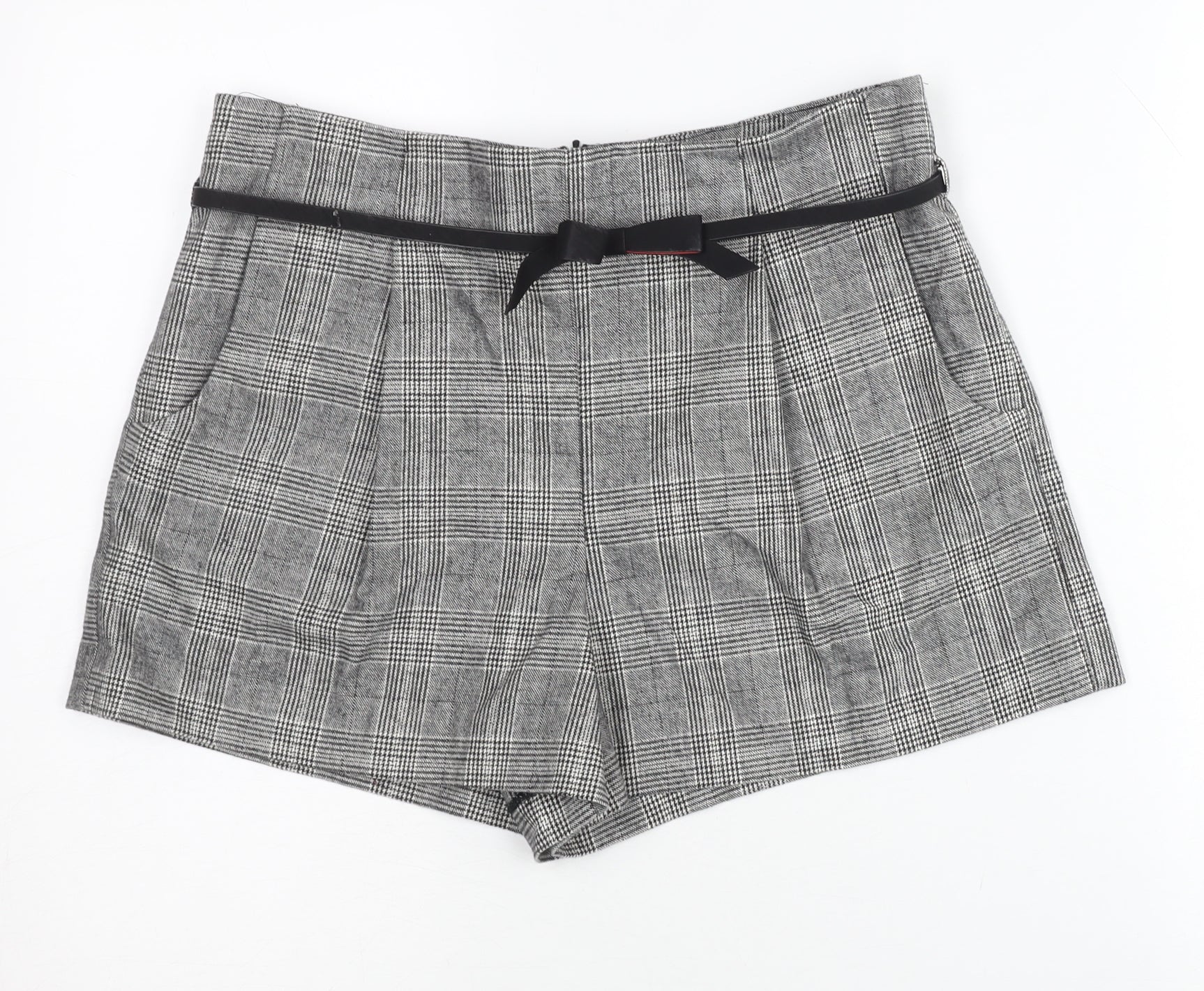 Topshop Women Grey Check Paperbag Shorts Size 12 Belted Pleated