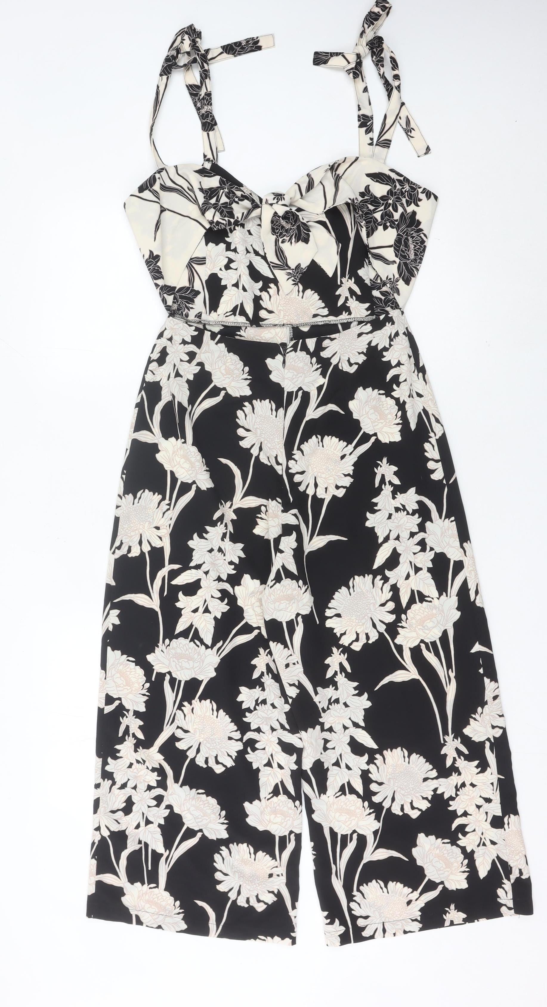 Topshop Women’s Black Floral Wide Leg Sleeveless Jumpsuit UK 6