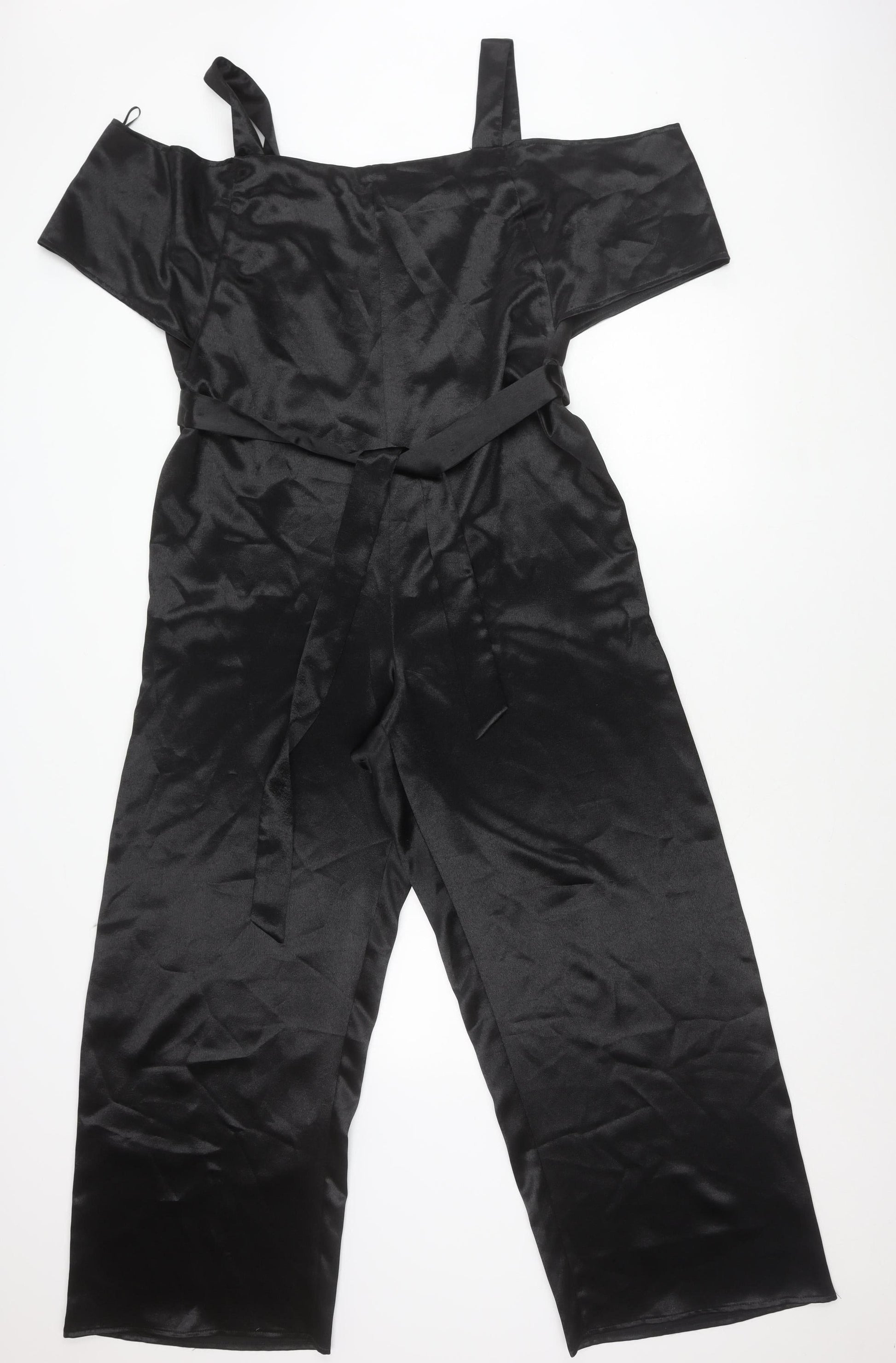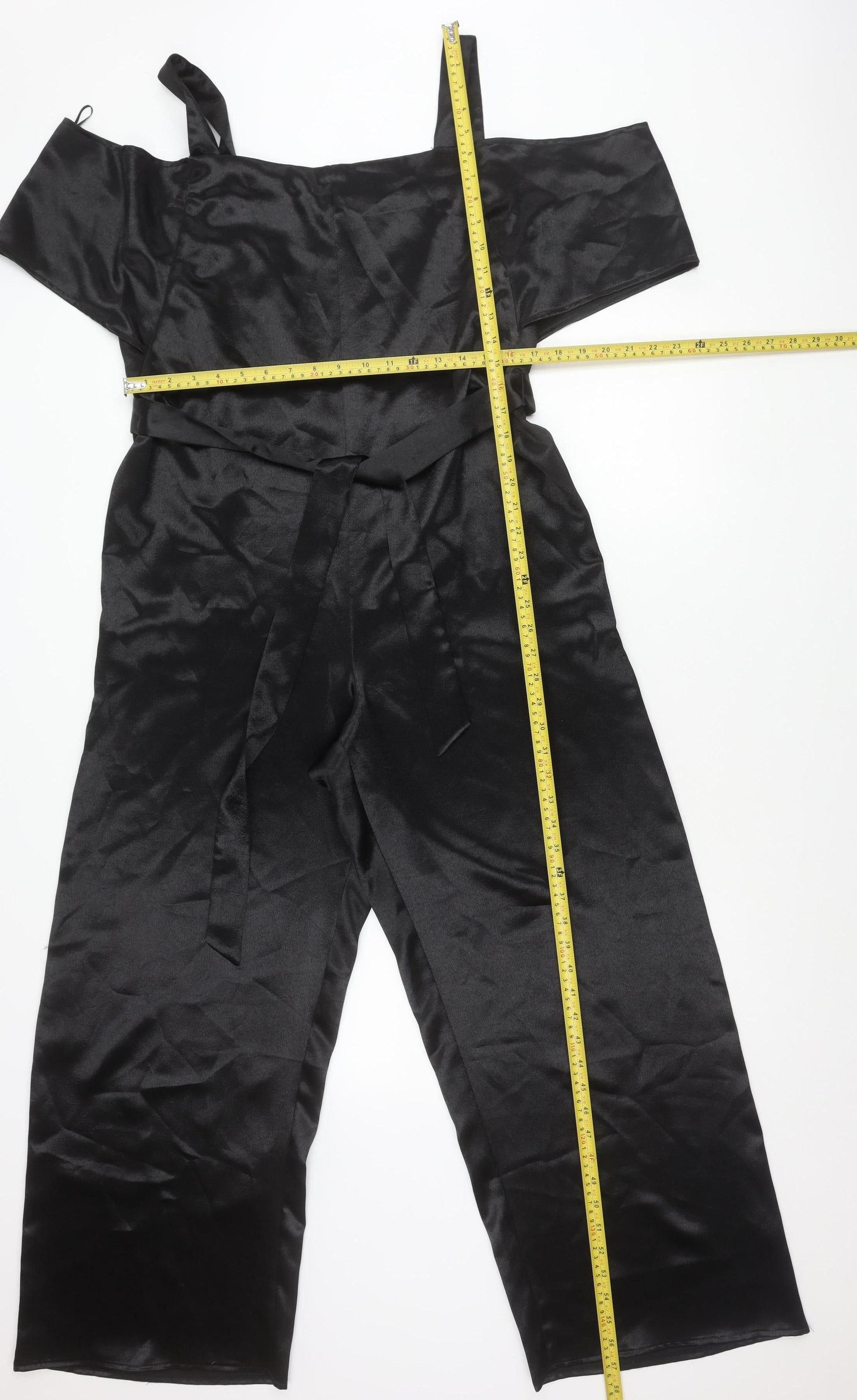 Topshop Women’s Black Satin Off Shoulder Wide Leg Jumpsuit UK 14