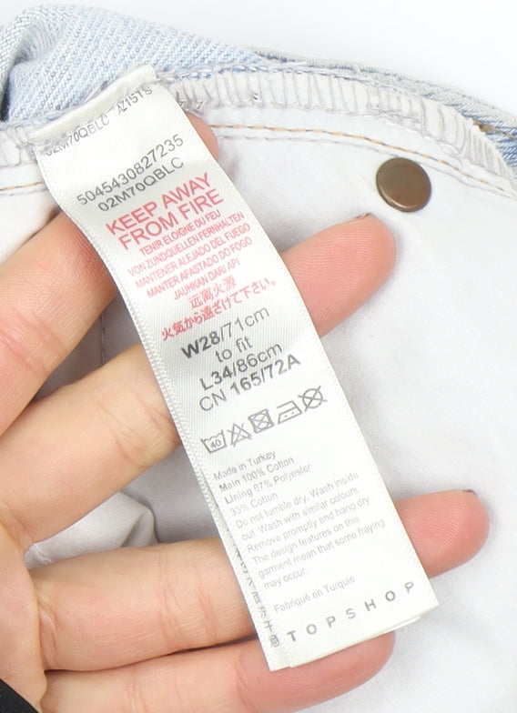 Topshop Women’s Blue High Rise Mom Jeans Size 10 Distressed Denim