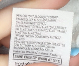 - Material Breakdown: 92% Cotton 6% Elastomultiester 2% Elastane