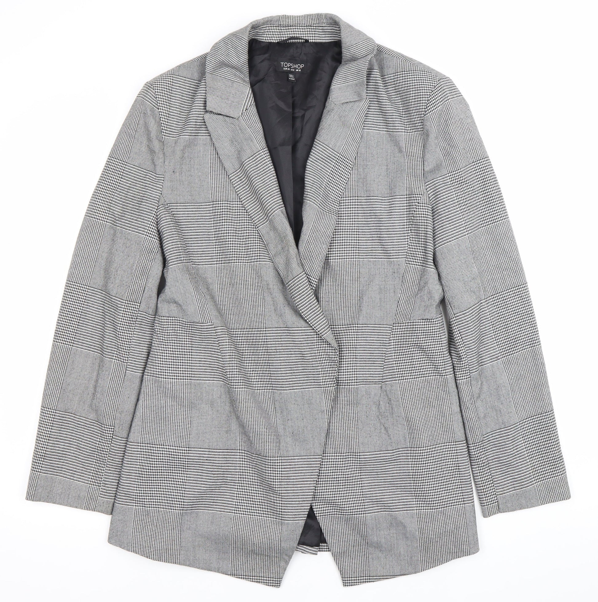 Topshop Women’s Grey Check Blazer Size 12 Single Breasted Jacket