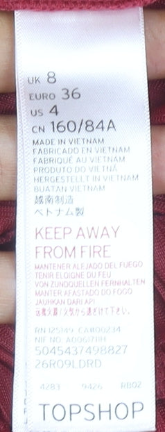 Topshop Women’s Red Pleated Wide-Leg Jumpsuit UK 8 Sleeveless V-Neck