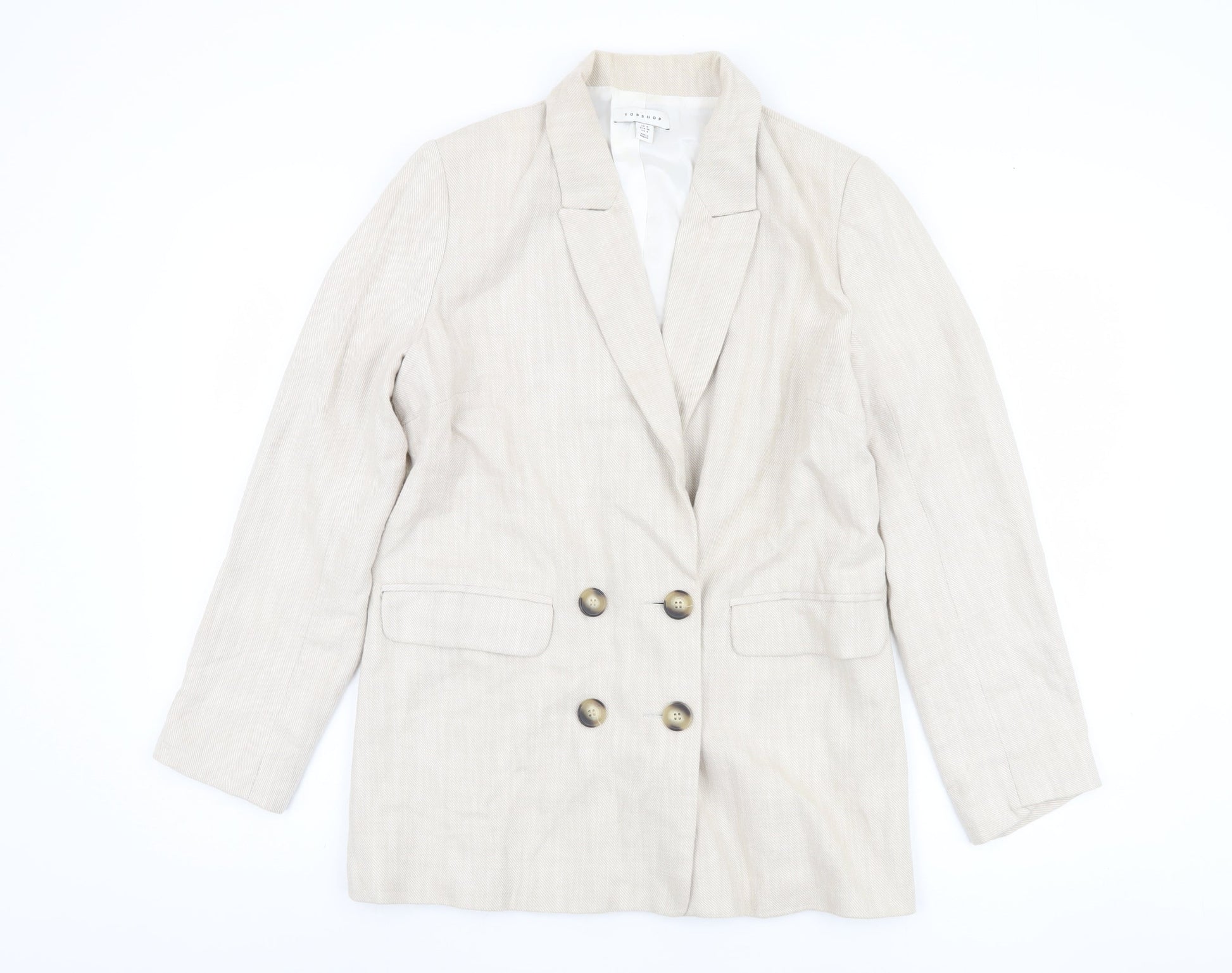 Topshop Women's Beige Double-Breasted Blazer UK 8