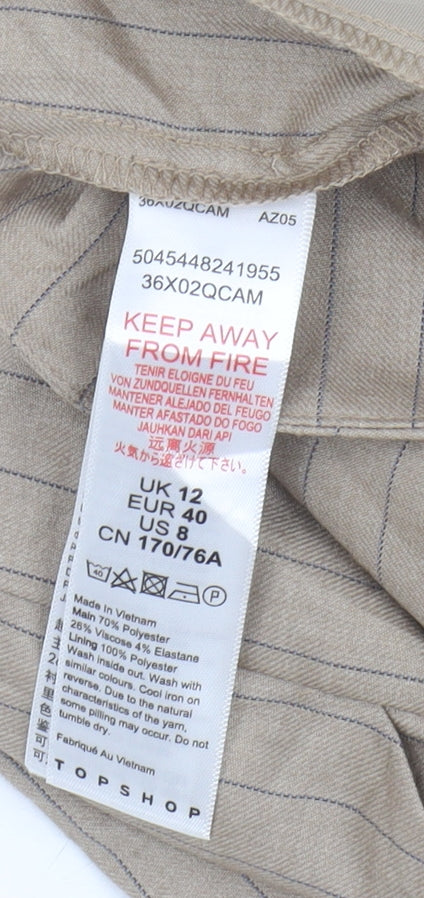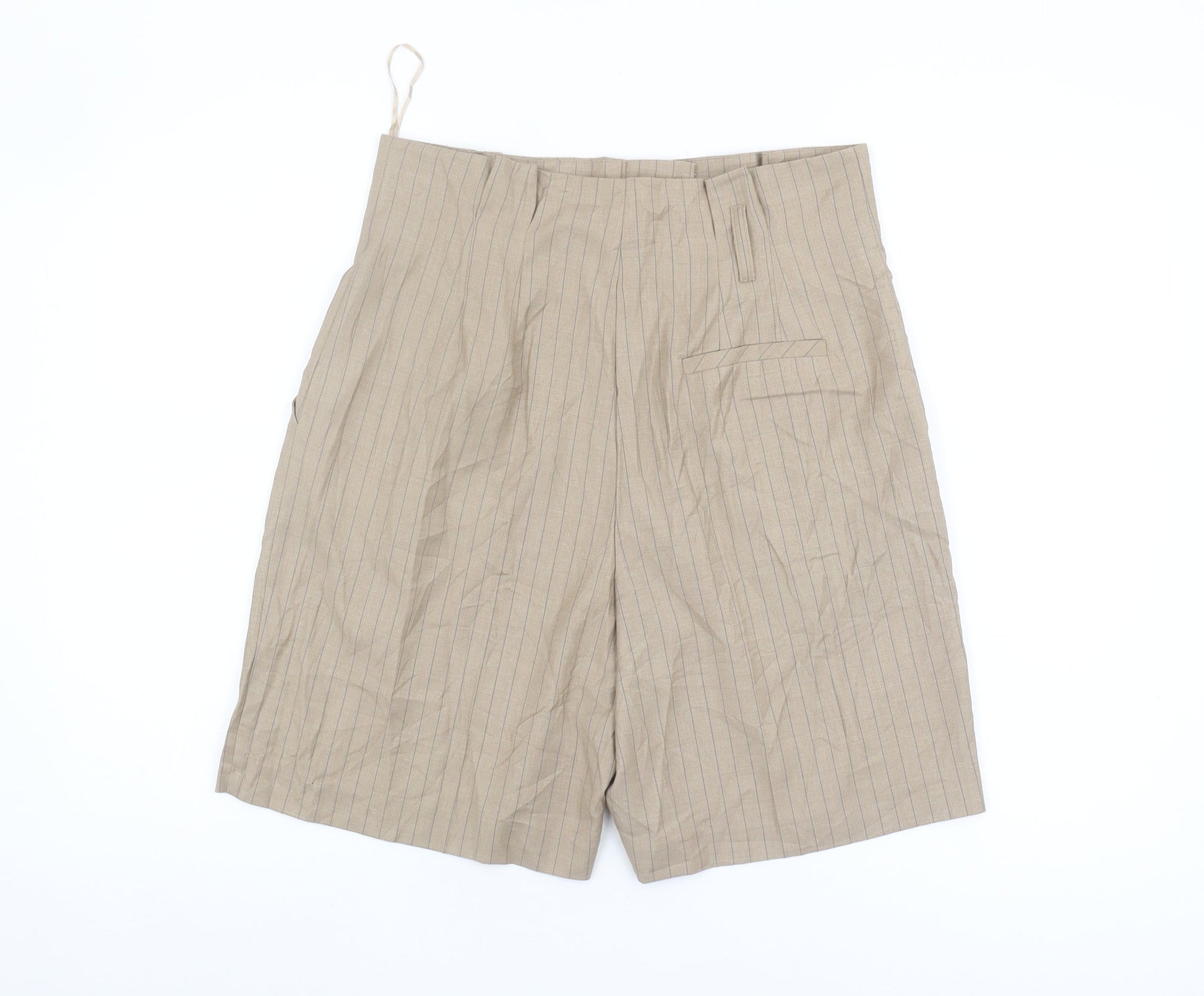 Topshop Women's Beige Pinstripe Pleated Shorts UK 12