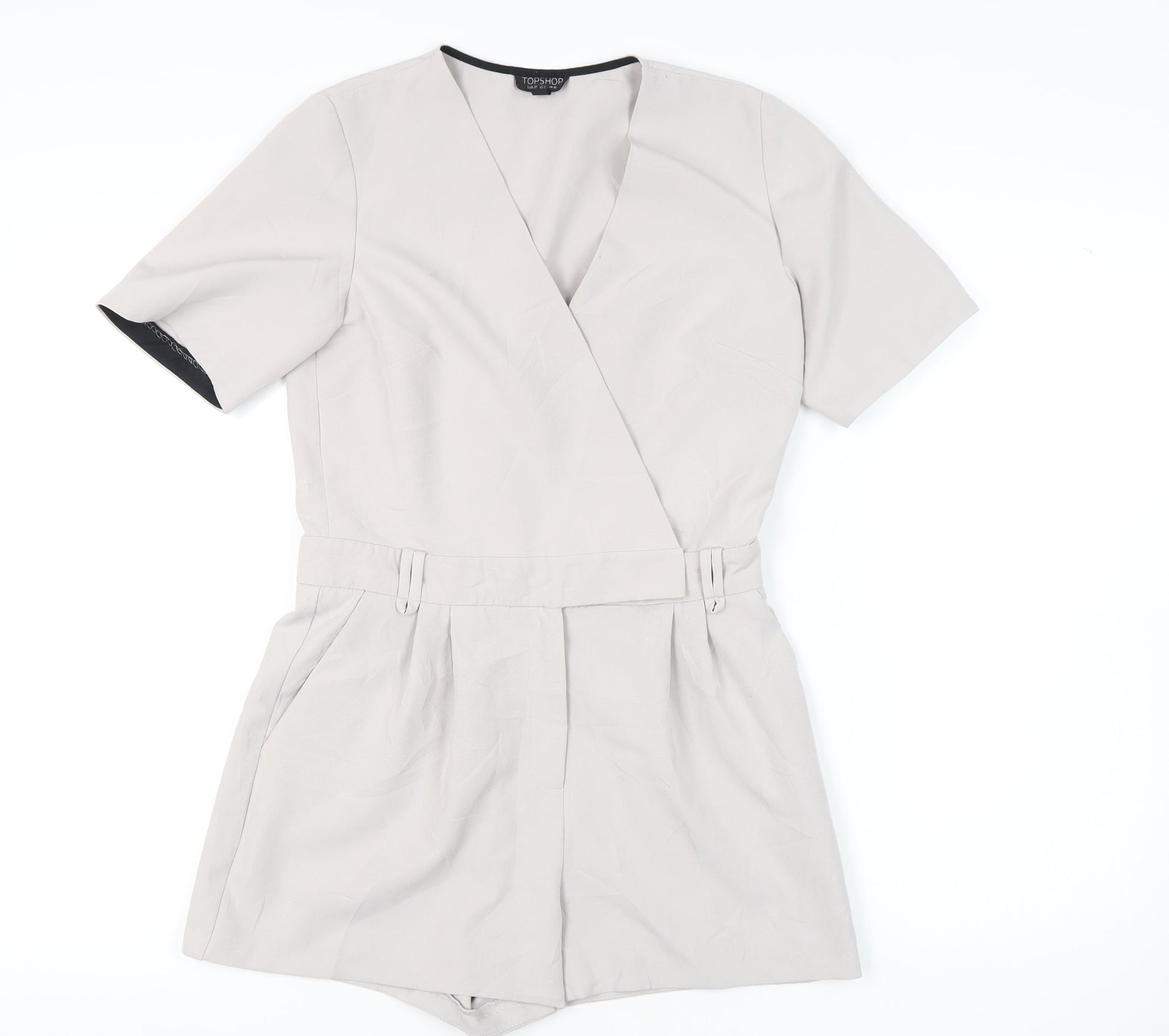 Topshop Women's Beige Short Sleeve Jumpsuit Size 10