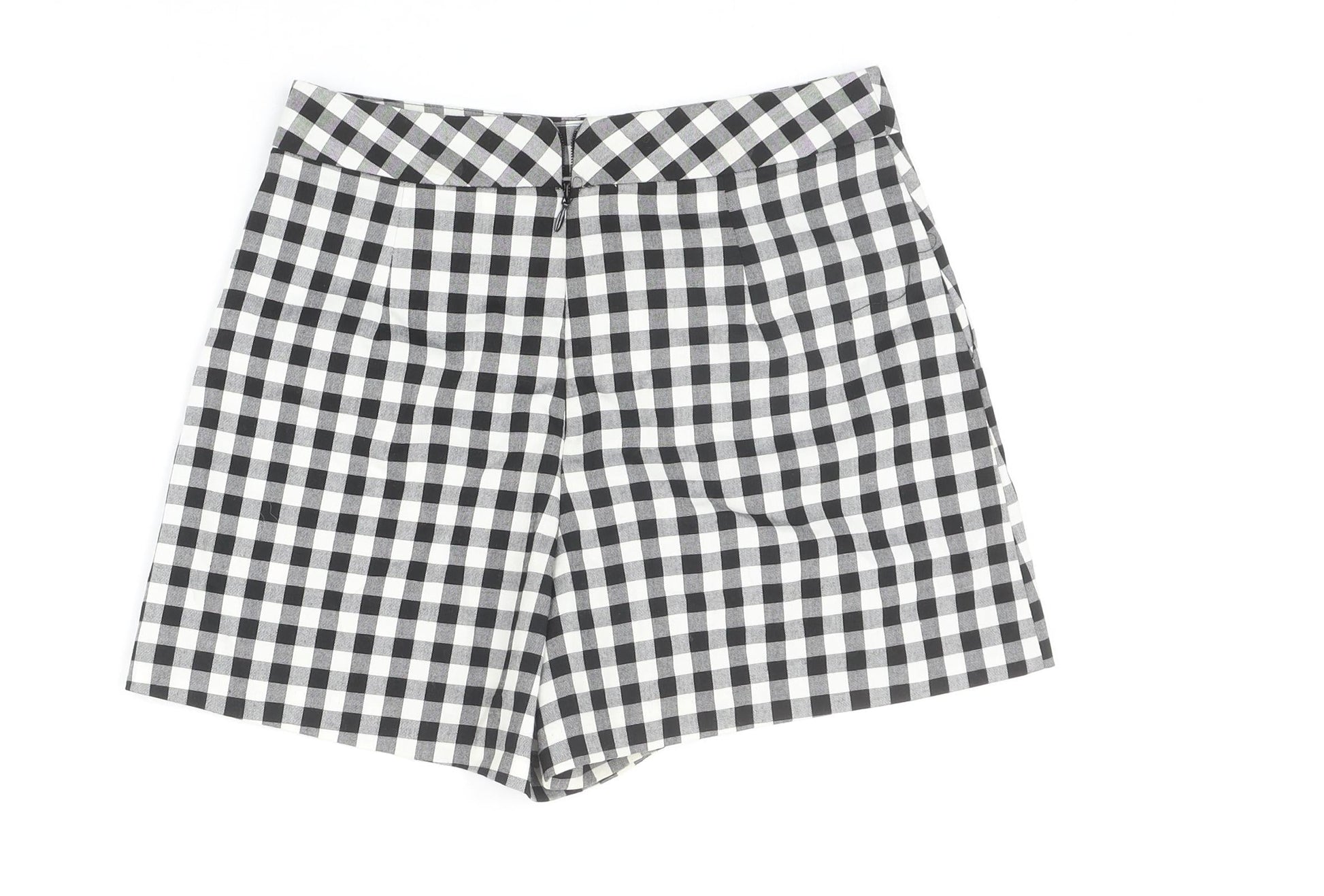 Topshop Womens Black Check Polyester Hot Pants Shorts Size 6 Regular Zip - Flower Detail