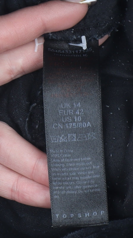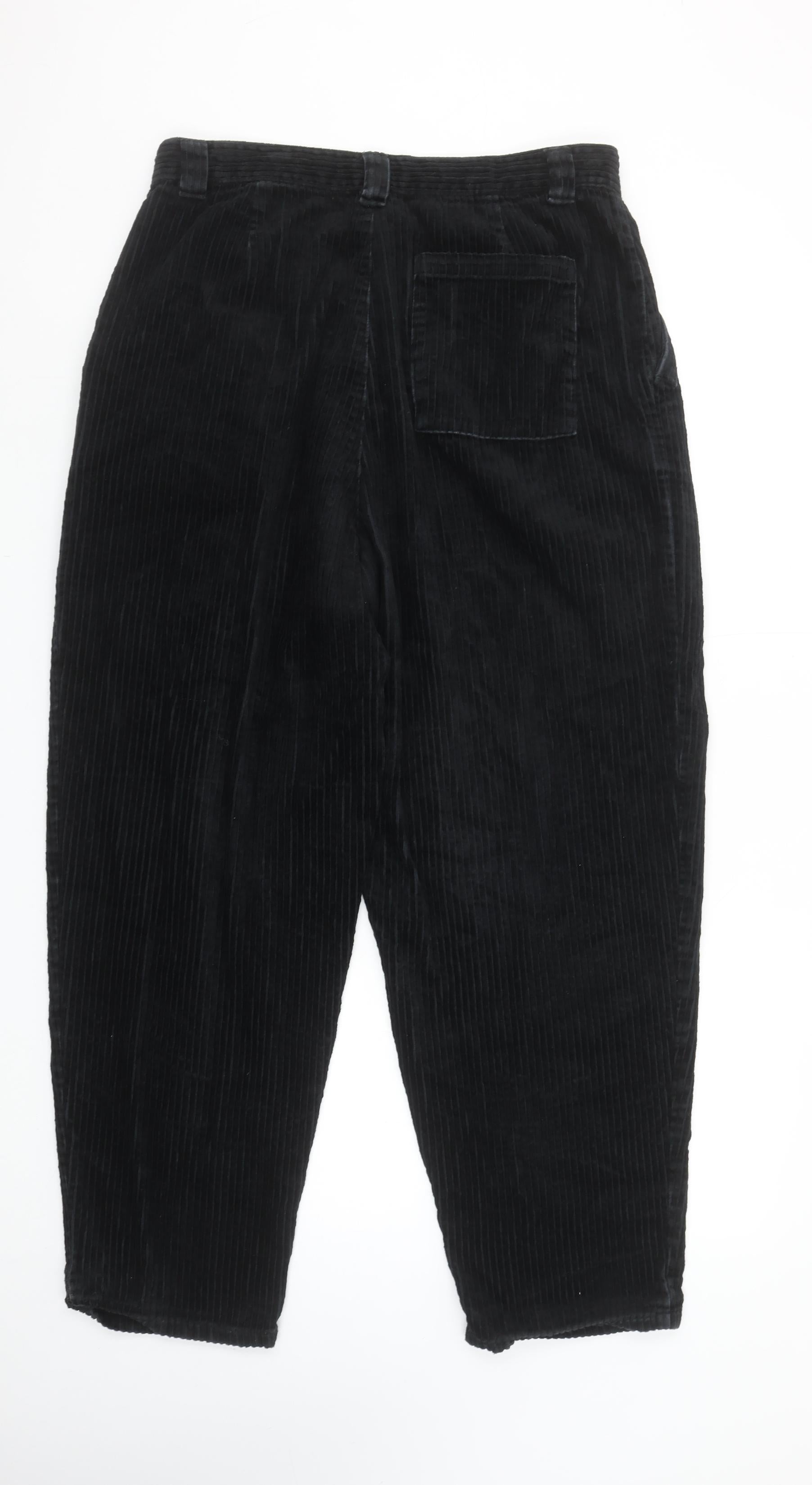 Topshop Womens Black Corduroy Tapered Trousers UK 14 High Waist