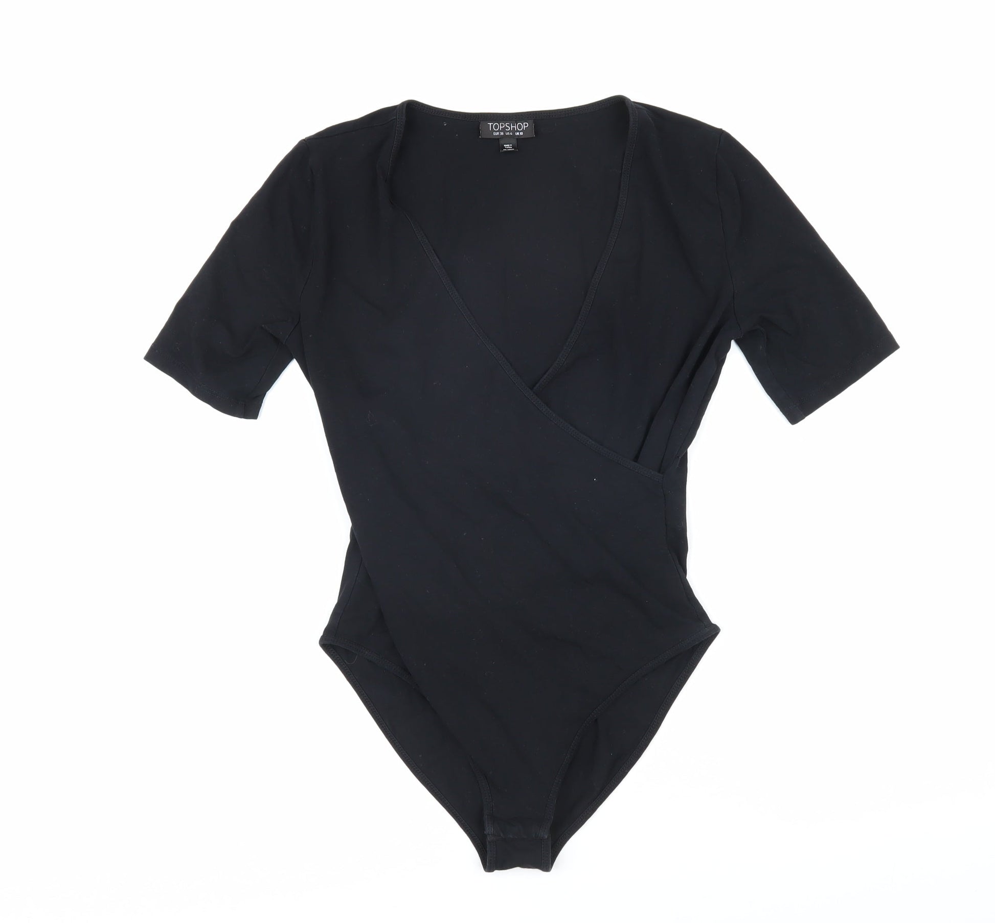 Topshop Womens Black Cotton Bodysuit One-Piece Size 10 Snap