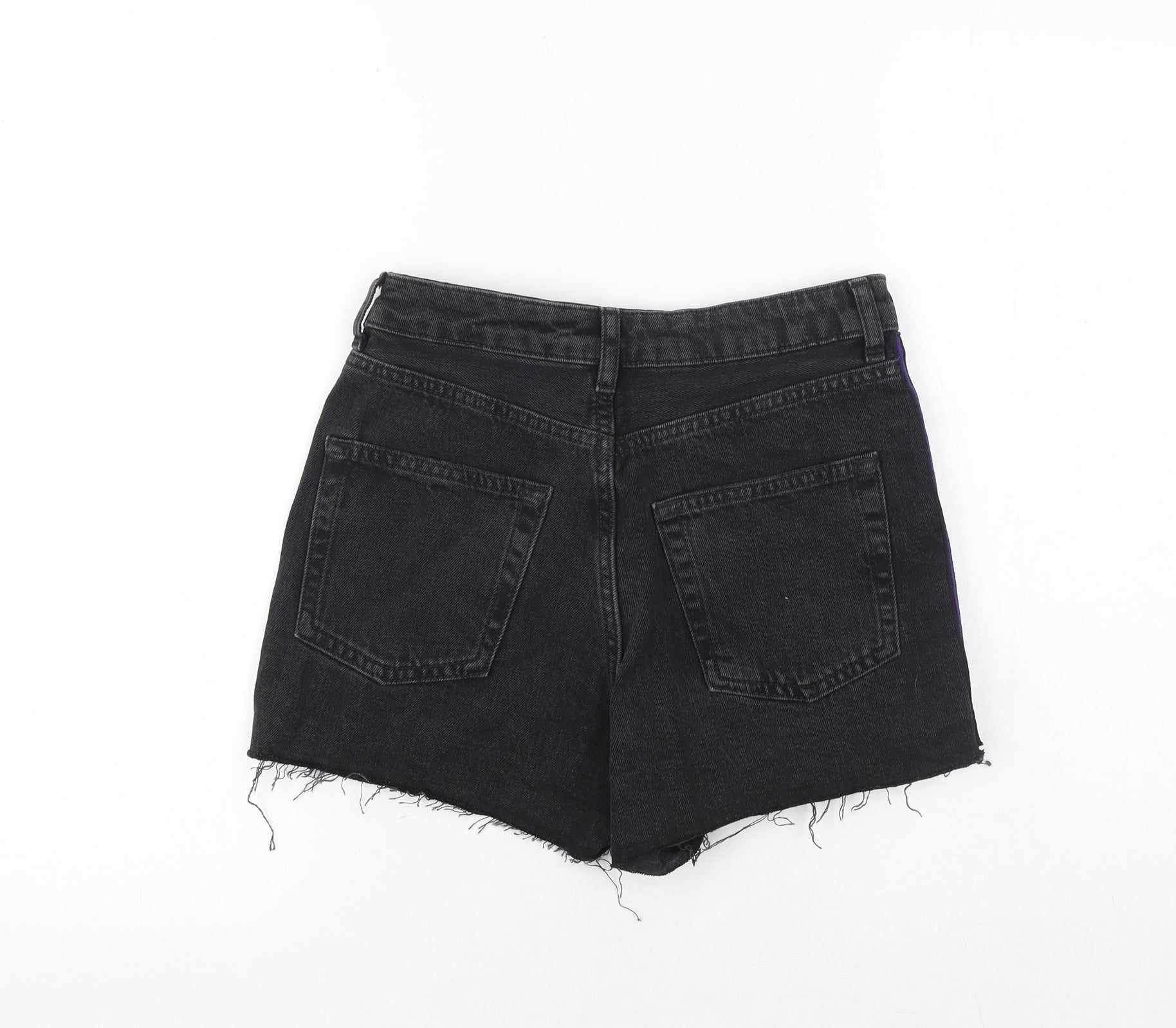 Topshop Womens Black Cotton Cut-Off Shorts Size 6 Regular Zip - Side Stripe Detail