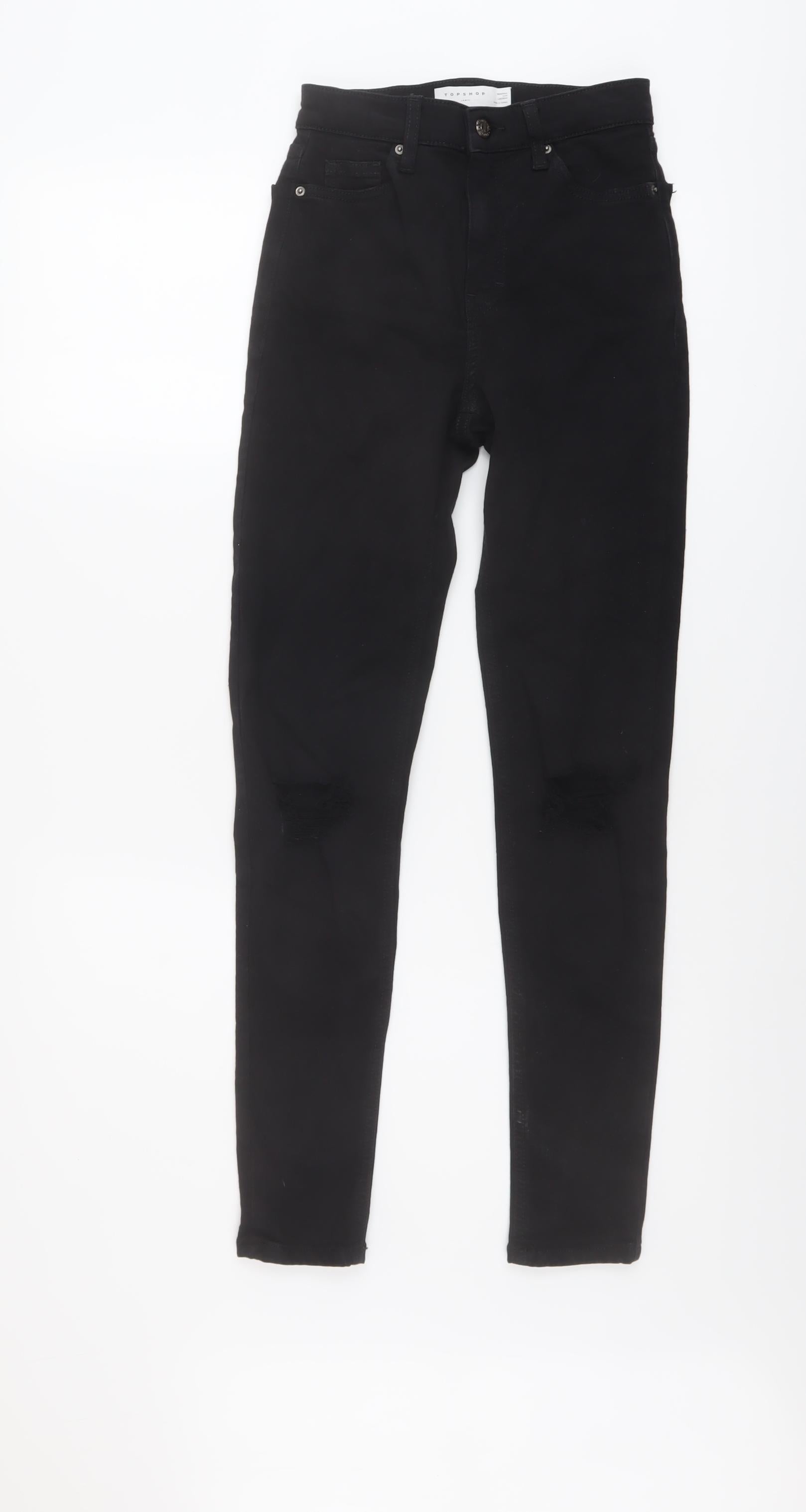 Topshop Womens Black Cotton Skinny Jeans Size 24 in L28 in Regular Button