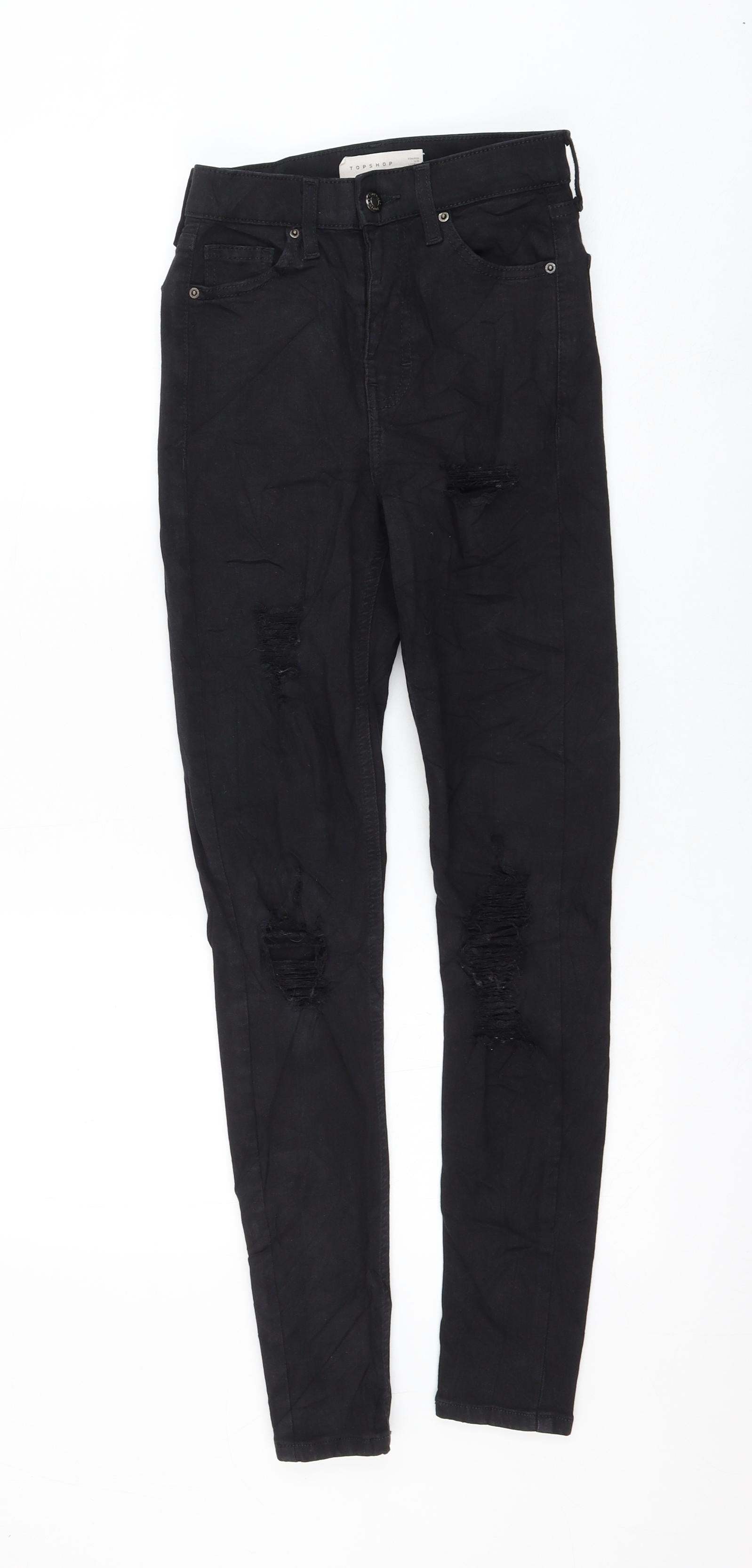 Topshop Womens Black Cotton Skinny Jeans Size 24 in L32 in Regular Zip