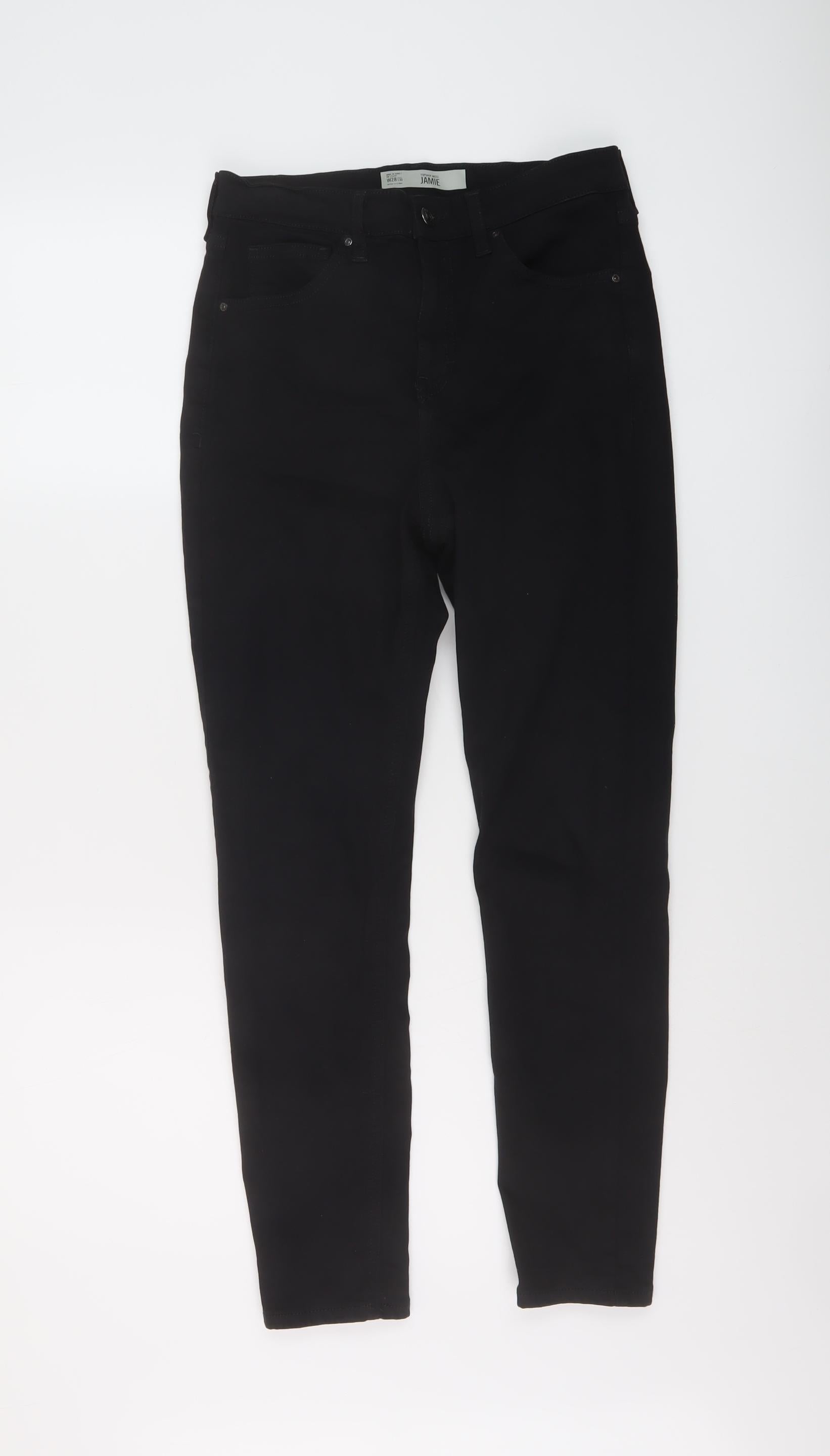 Topshop Womens Black Cotton Skinny Jeans Size 28 in L26 in Regular Button