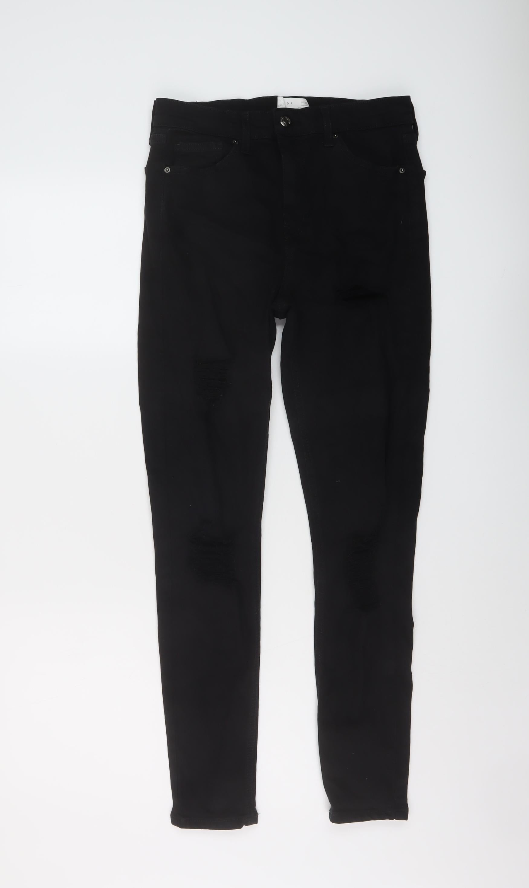 Topshop Womens Black Cotton Skinny Jeans Size 30 in L30 in Regular Button