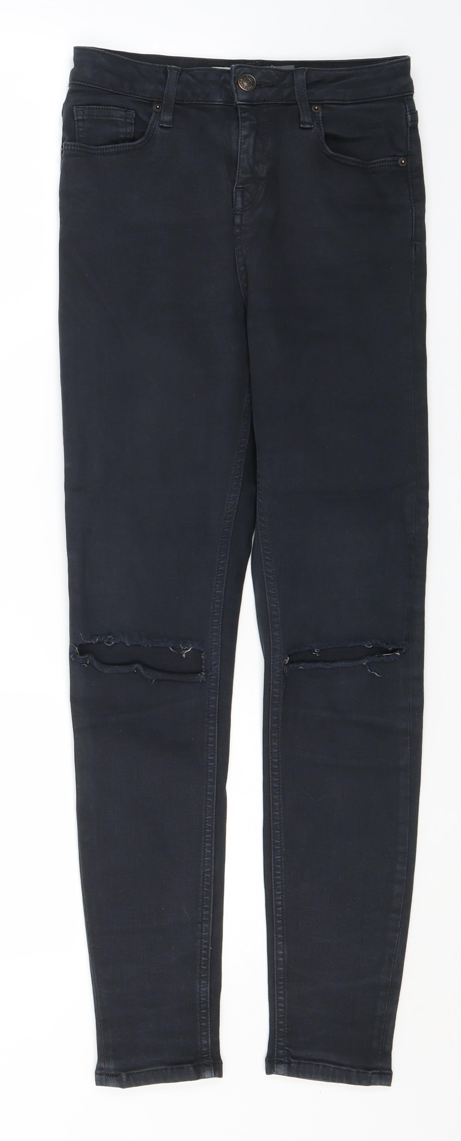 Topshop Womens Black Cotton Straight Jeans Size 26 in L26 in Regular