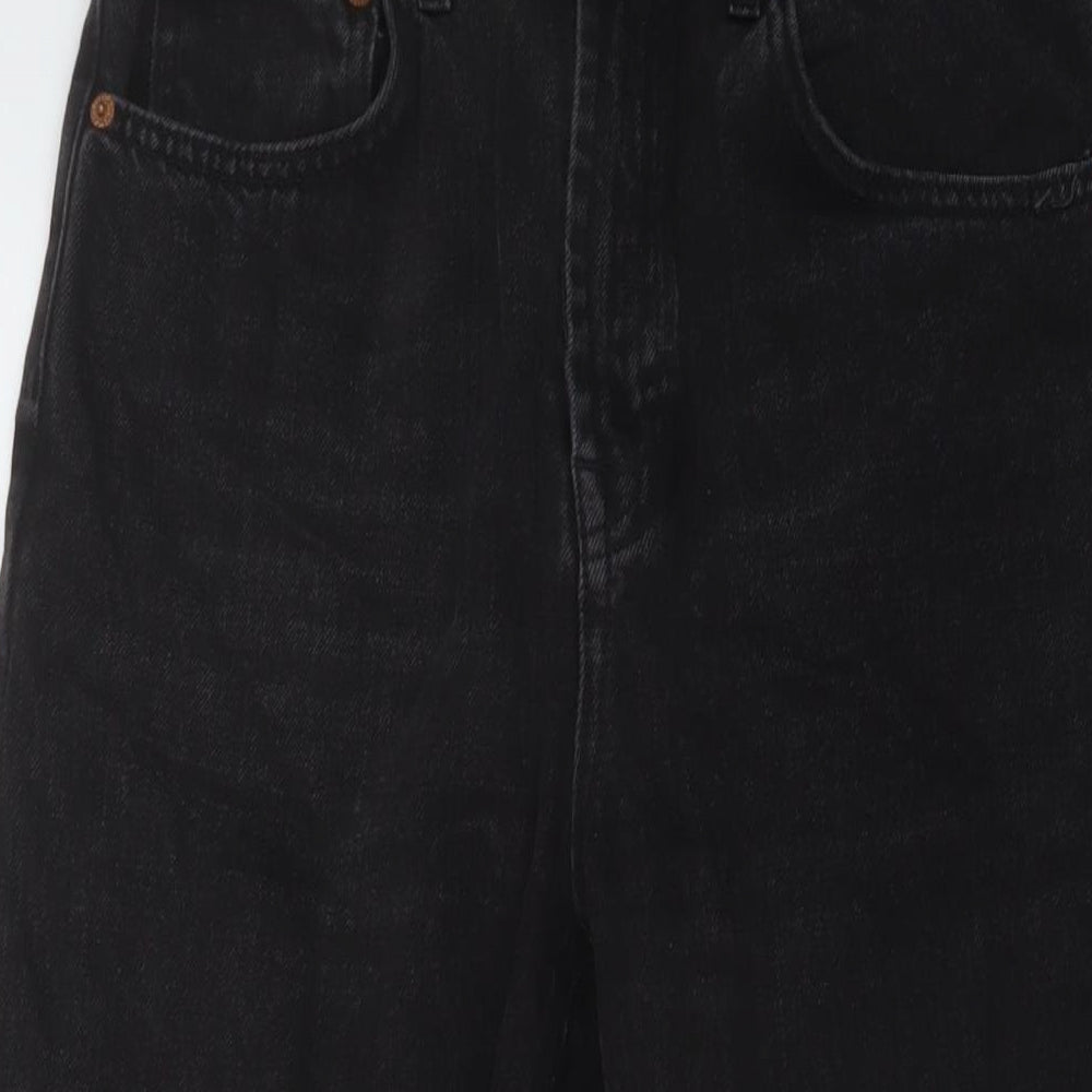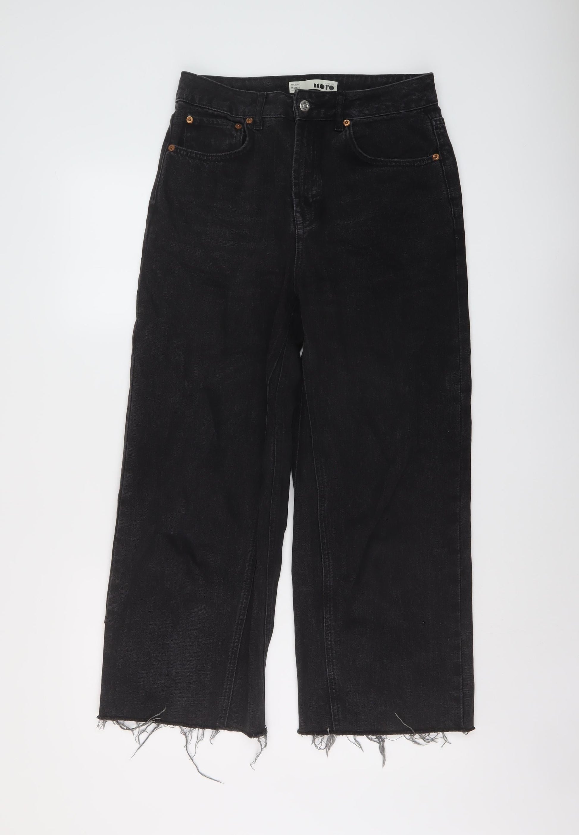 Topshop Womens Black Cotton Wide-Leg Jeans Size 28 in L25 in Regular Button