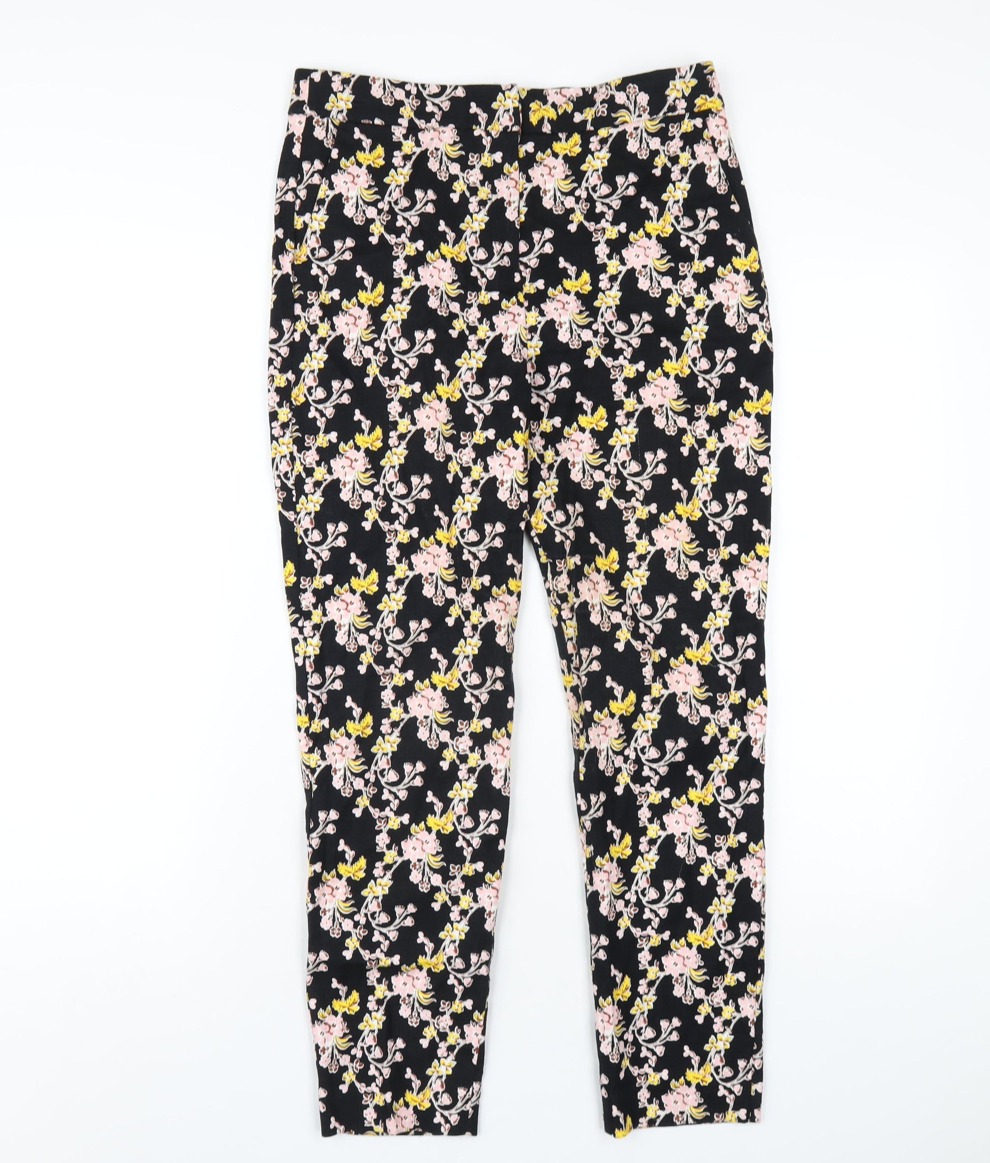 Topshop Womens Black Floral Cotton Trousers Size 10 L27 in Regular Zip