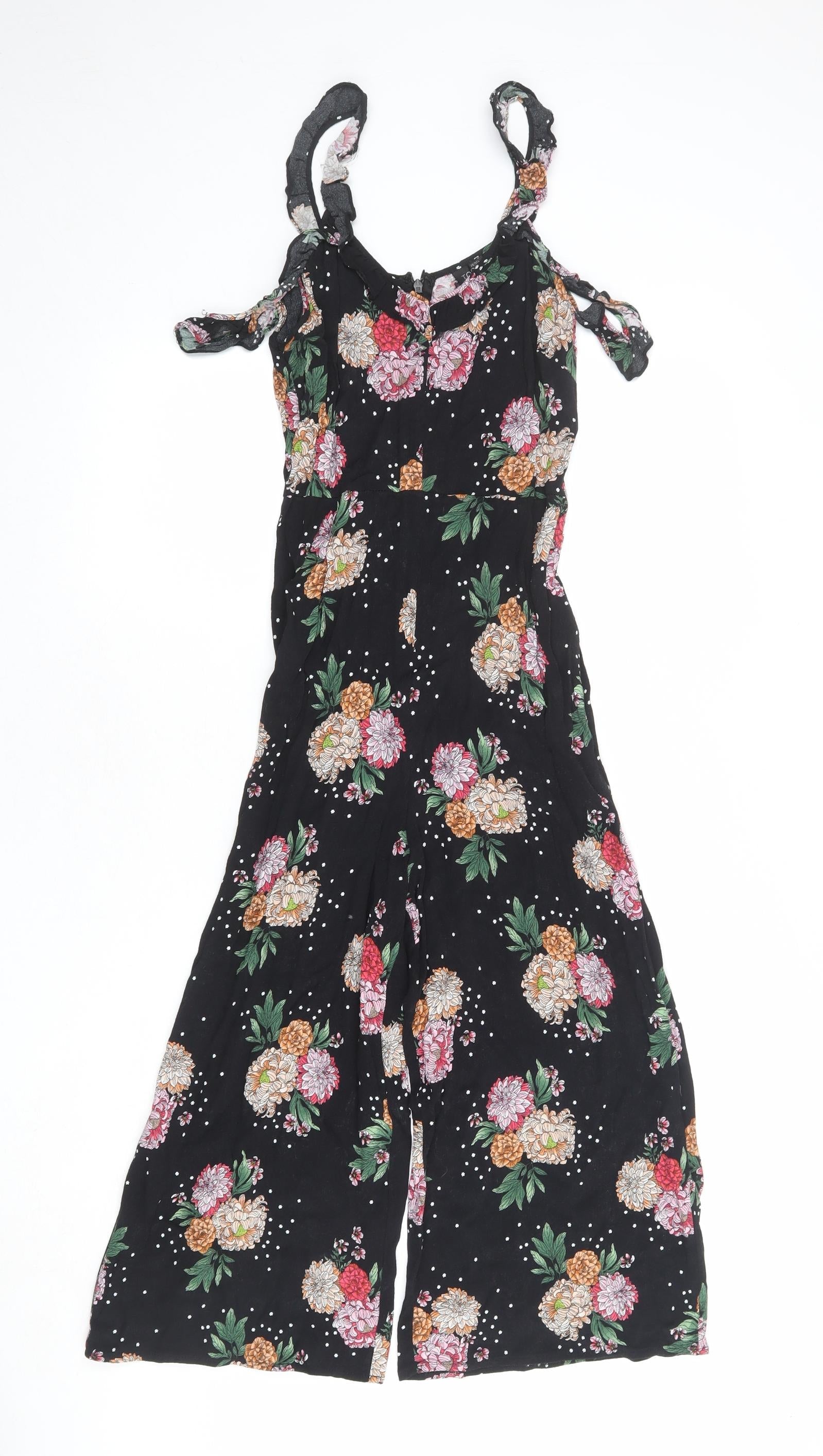 Topshop Womens Black Floral Polyester Jumpsuit One-Piece Size 6 Zip