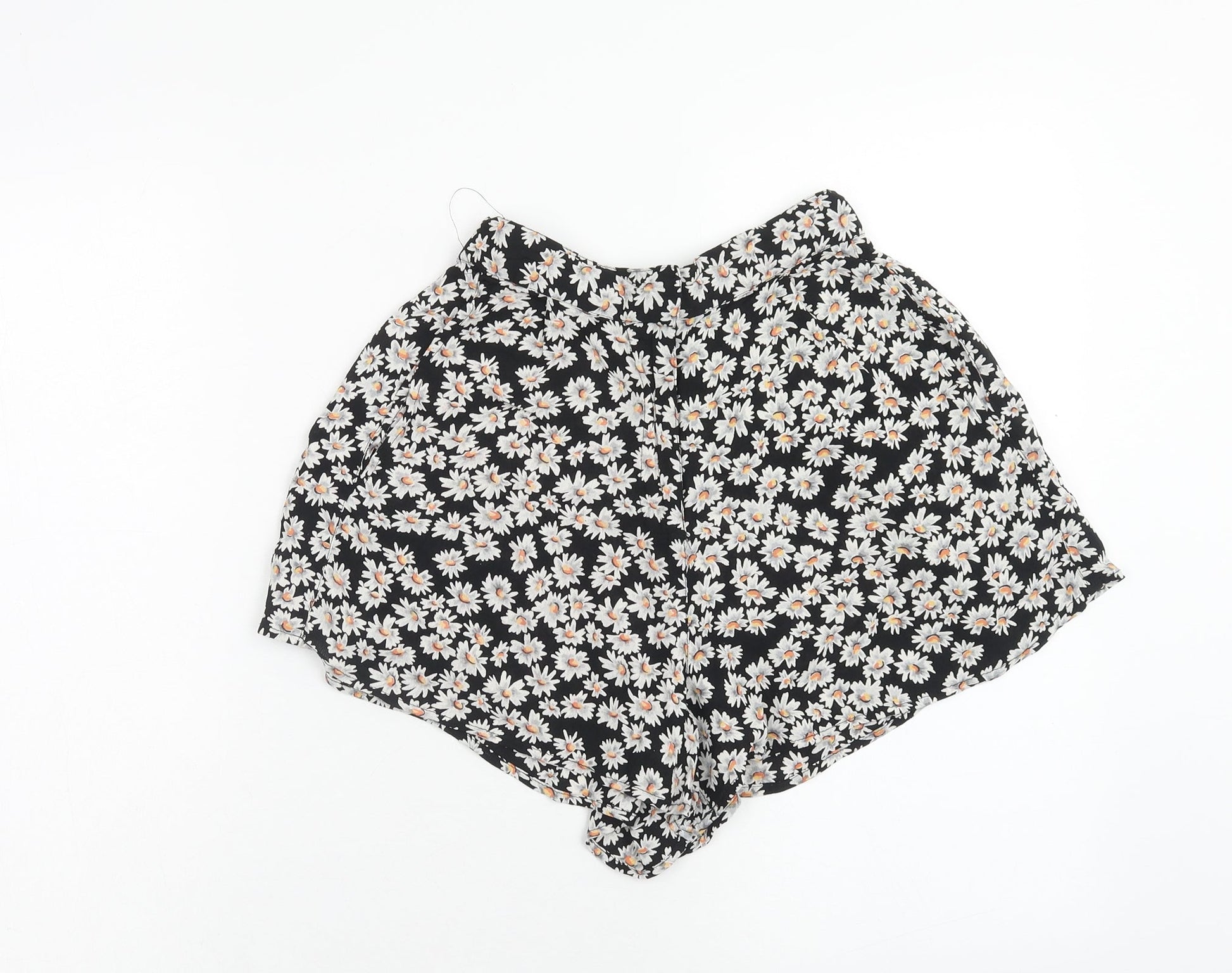 Topshop Womens Black Floral Viscose Bermuda Shorts Size 8 Regular Hook & Eye