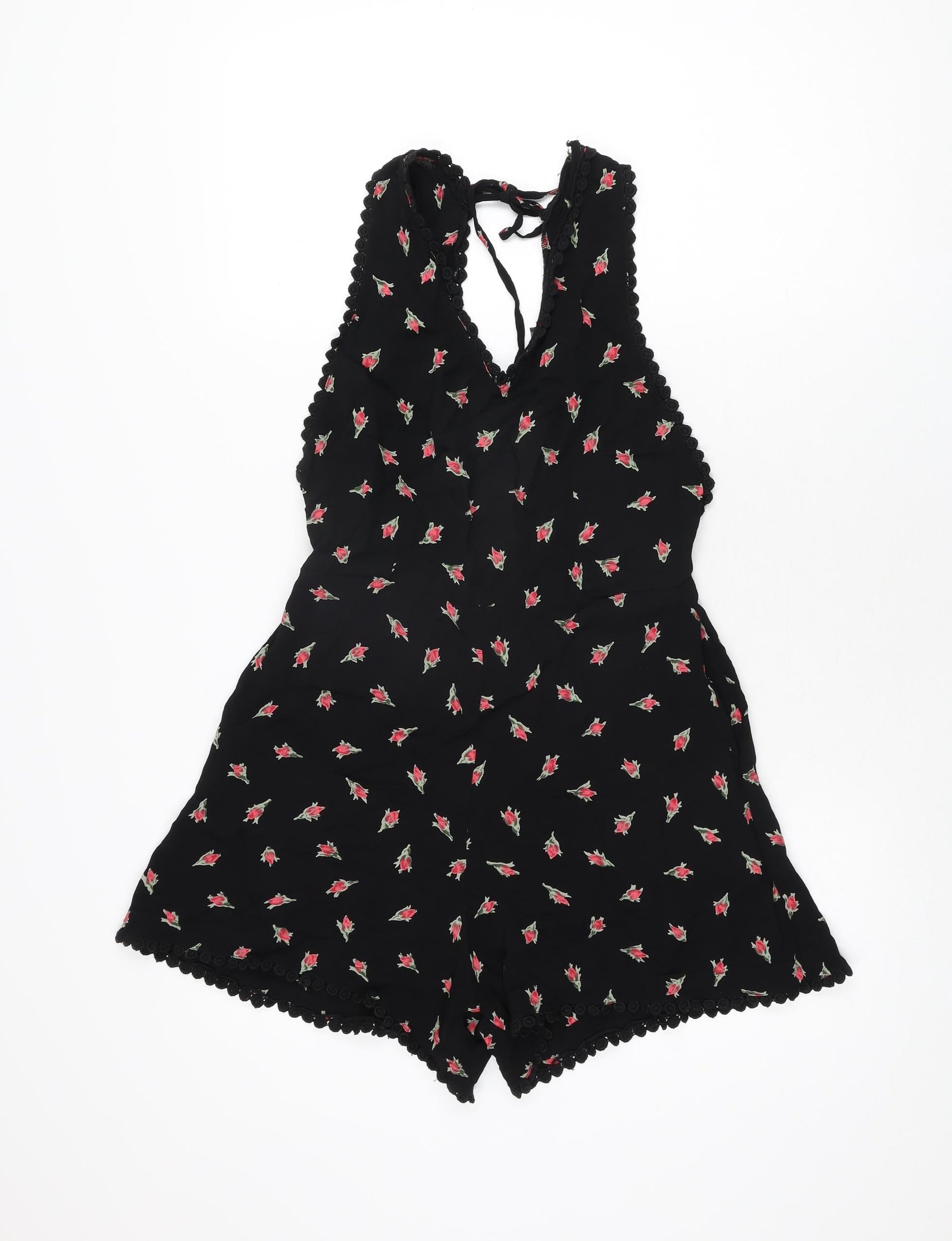 Topshop Womens Black Floral Viscose Playsuit One-Piece Size 10 L3 in Zip